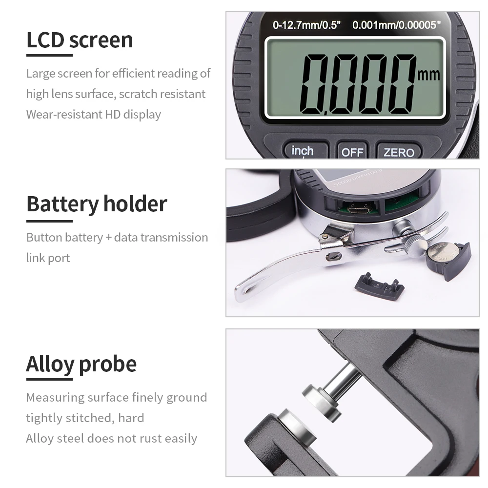 0.01mm/0.001mm Digital Thickness Gauge High-precision LCD Screen Electronic Percentage Micrometer Thickness Meter Measuring Tool