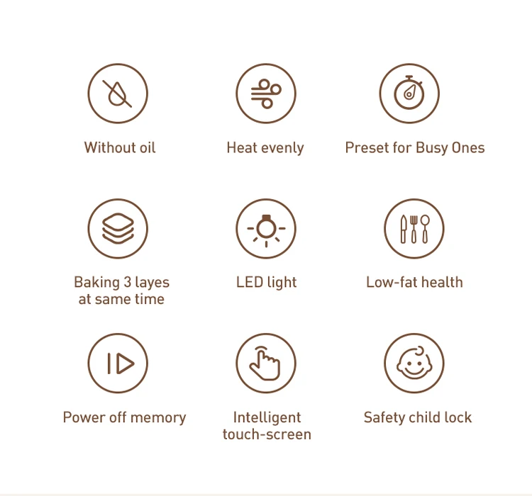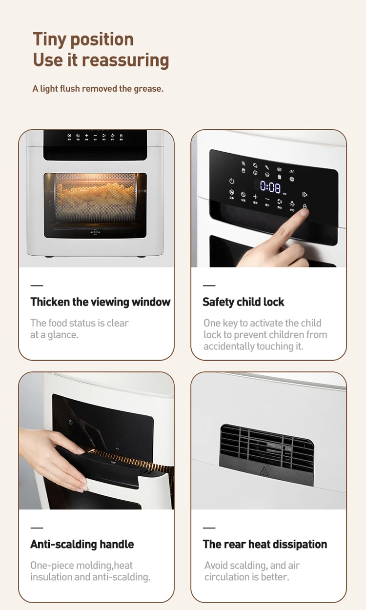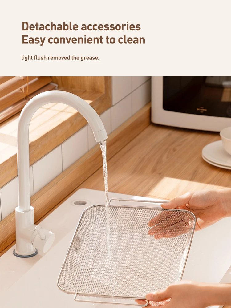 Nepridegantis kepimo paviršius, reguliuojamas termostatas, nuimamas aliejaus indas, apsauga nuo perkaitimo, su šviesos indikatoriumi, su stebėjimo langeliu