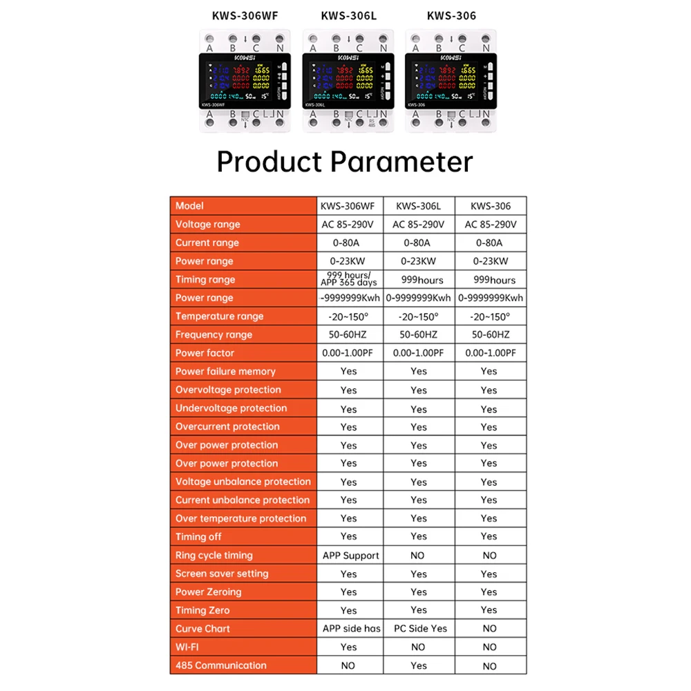 Tipas : Įtampos apsaugos elektros skaitiklis, „WiFi“ galios skaitiklis KWS-306WF skaitmeninis energijos testeris, srovės įtampos apsauga, energijos suvartojimo skaitiklis namams, elektros skaitiklio vatmetras