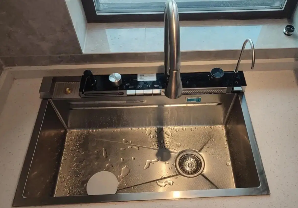 2024 m. virtuvės skaitmeninio ekrano kriauklė su nanokorio formos nerūdijančio plieno vienos kriauklės indaplovės kriauklei, daugiafunkcinė
