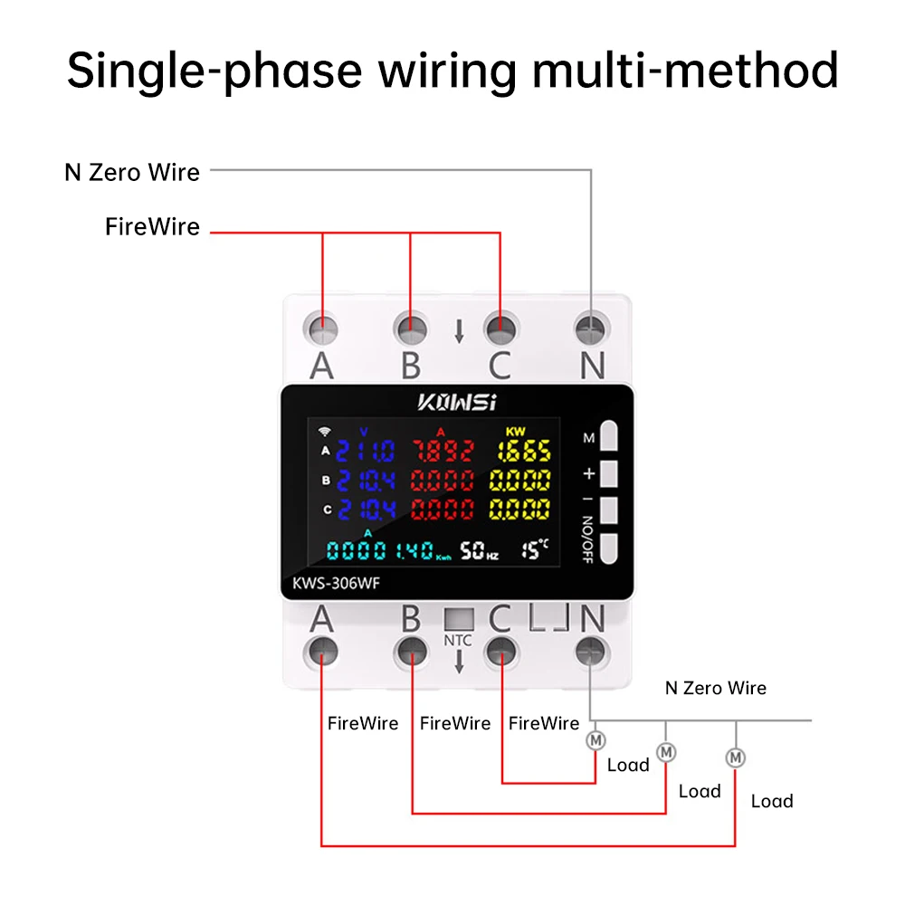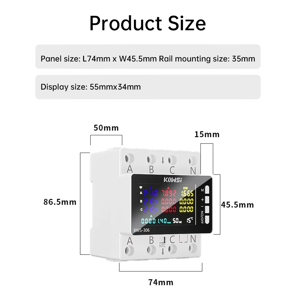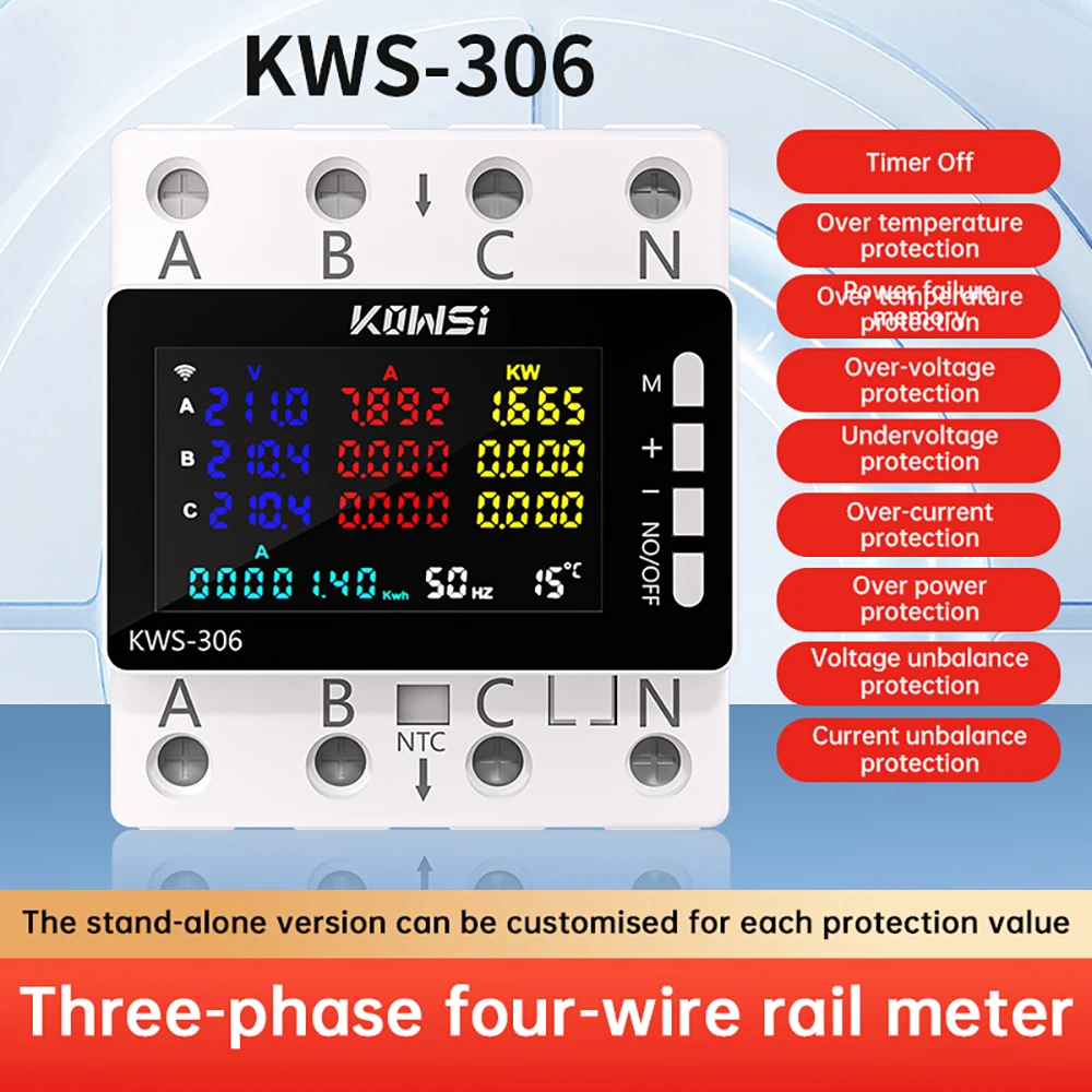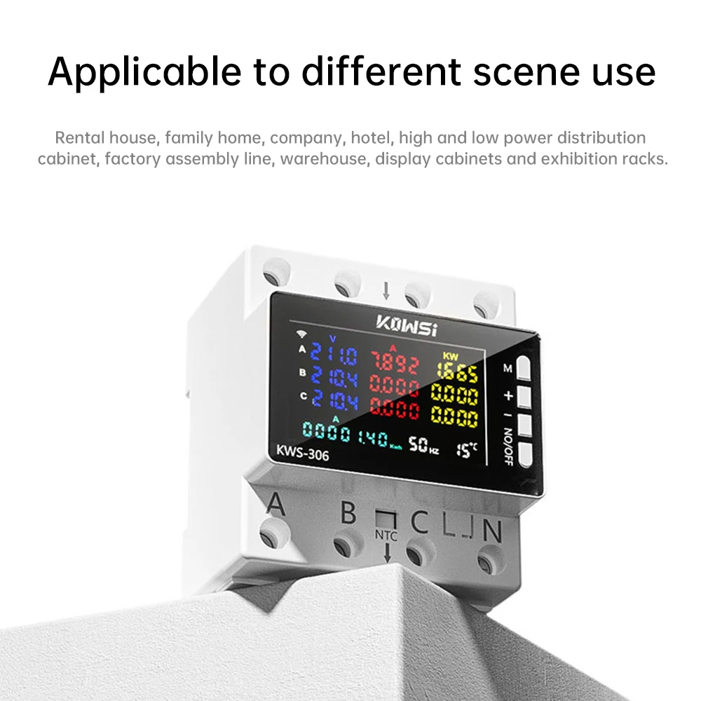 AC 85-290V 80A Tuya WIFI išmanusis grandinės pertraukiklis, trifazis, 4 laidų bėgio įtampos matuoklis, kWh galios energijos matuoklis, programėlės nuotolinio valdymo pultas