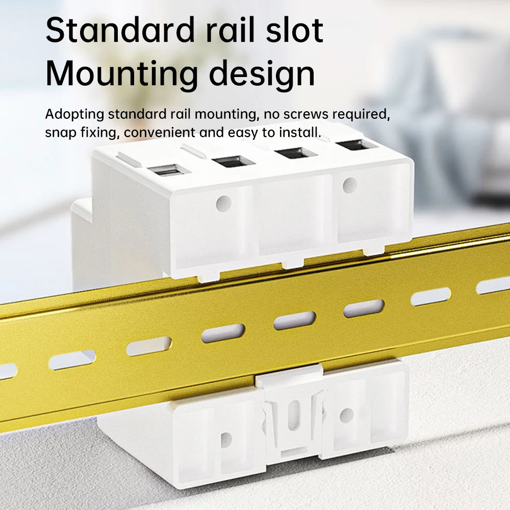 2. Standartinis kreipiamojo bėgelio lizdo montavimo dizainas: naudojant standartinį 35 mm kreipiamojo bėgelio montavimą, nereikia varžtų, sagties tvirtinimas, paprastas ir patogus montavimas