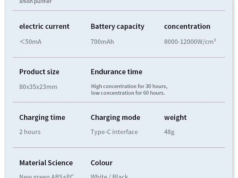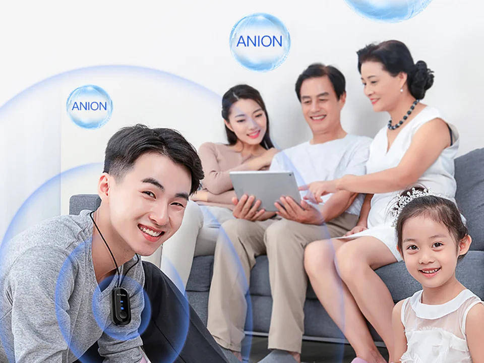 Oro valytuvas „Anion Mini“ nešiojamas 700 mAh šviežių anijonų generatorius su apykaklės spaustuku, 5 V mini nutildymas automobiliui ir namams