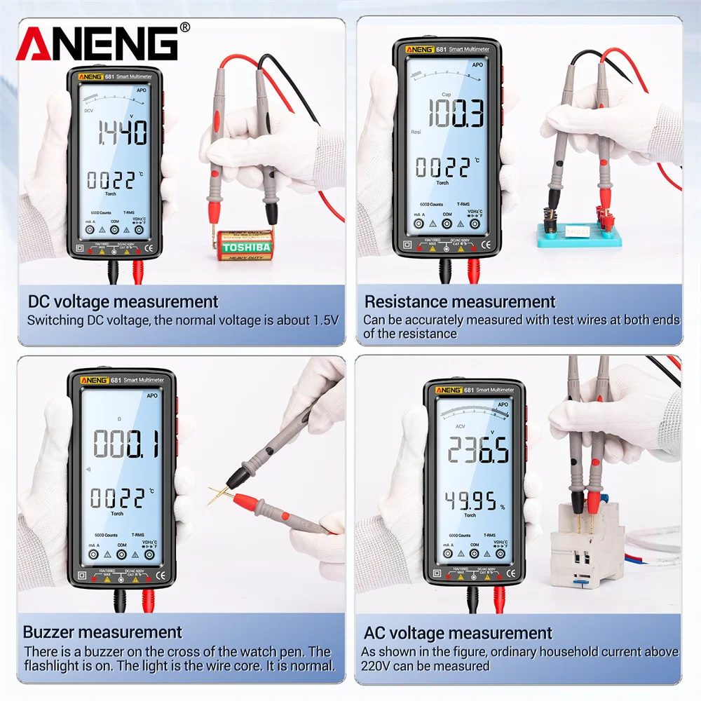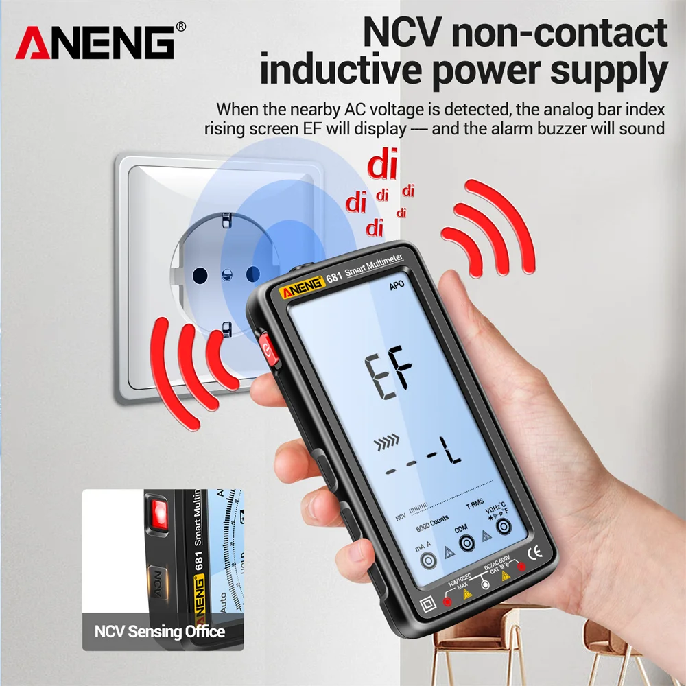 ANENG 681 įkraunamas skaitmeninis profesionalus multimetras bekontakčio įtampos testeris AC/DC įtampos matuoklis LCD ekranas srovės testeris