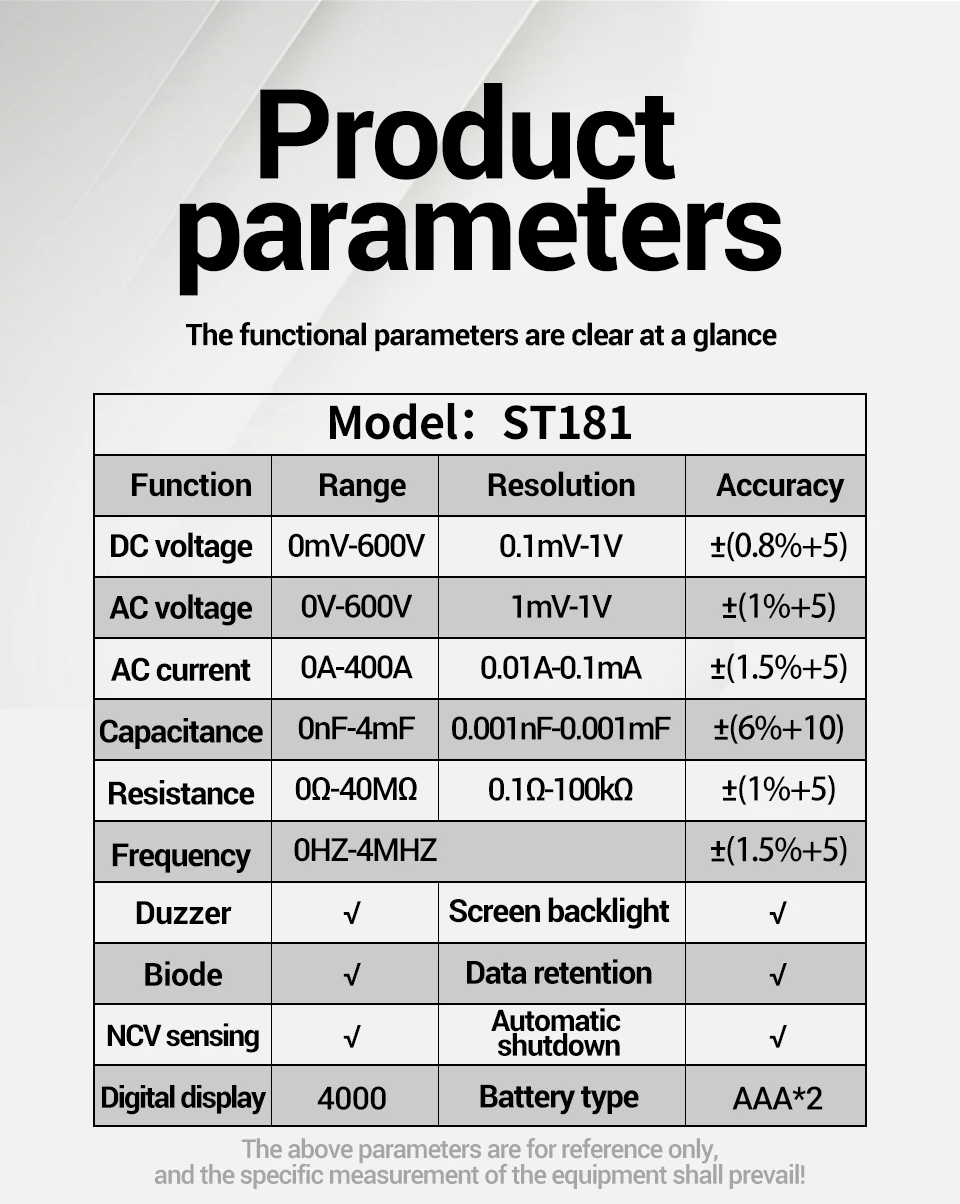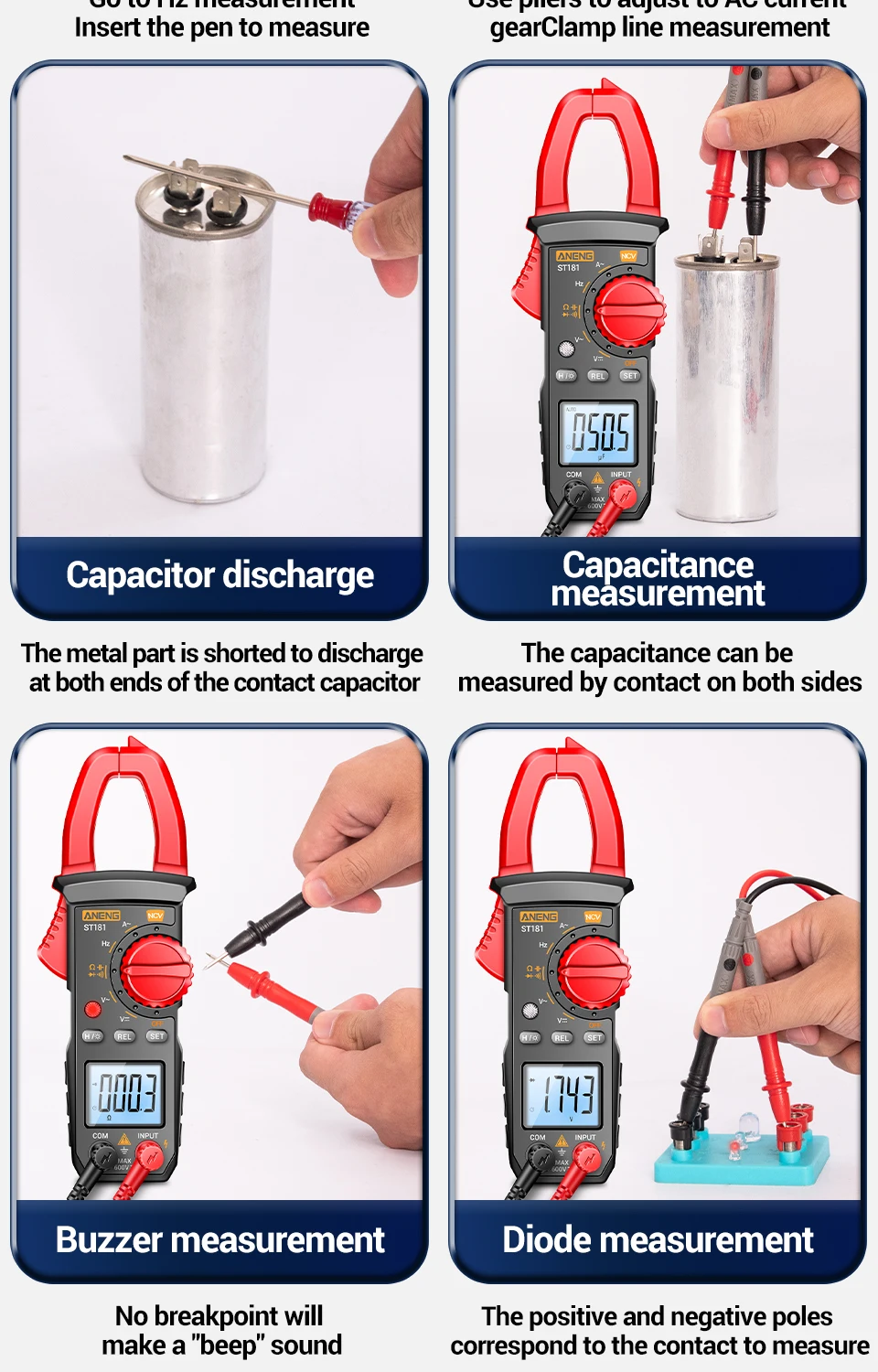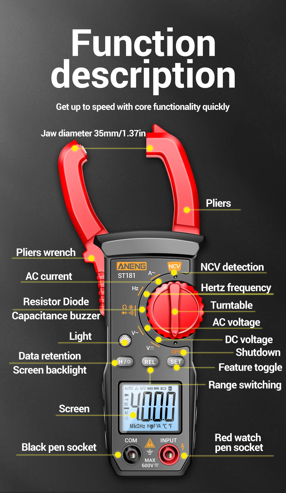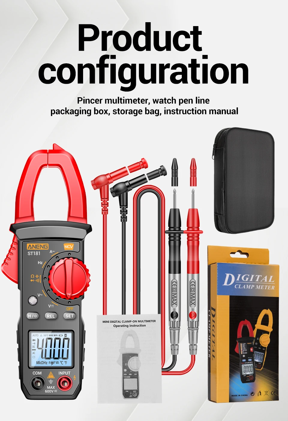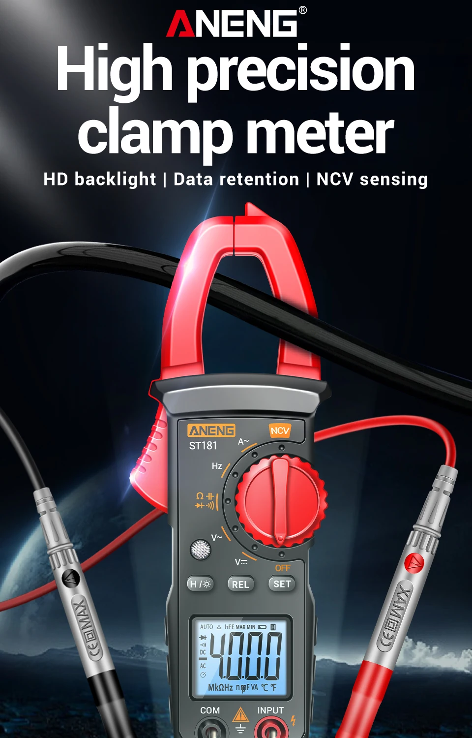 ANENG ST181 skaitmeninis spaustukas DC/AC srovės matuoklis 4000 skaičių multimetras ampermetras įtampos testeris automobilio ampermetrai Hz talpa NCV omų testas