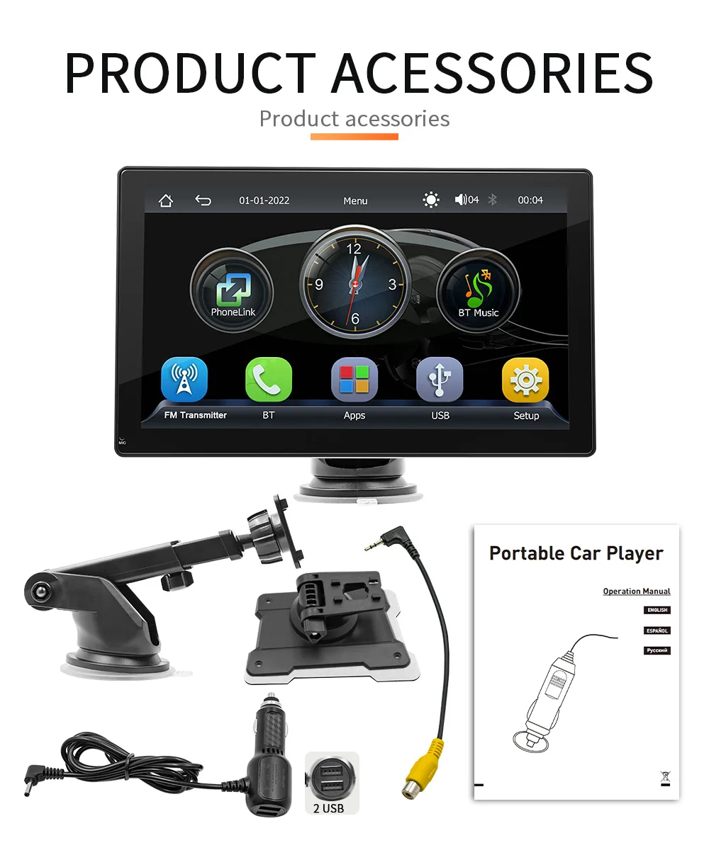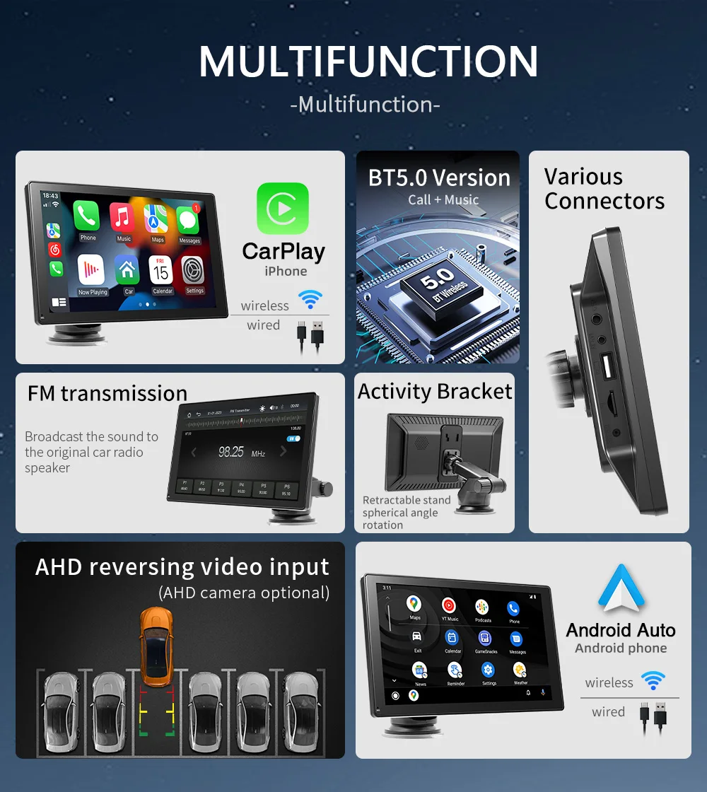 BQCC 10,26 colio IPS jutiklinis ekranas nešiojamas automobilinis grotuvas belaidis „Carplay“ „Android Auto“ „Mirrorlink“ dvigubas laikiklis išmanusis stereofoninis automobilio ekranas