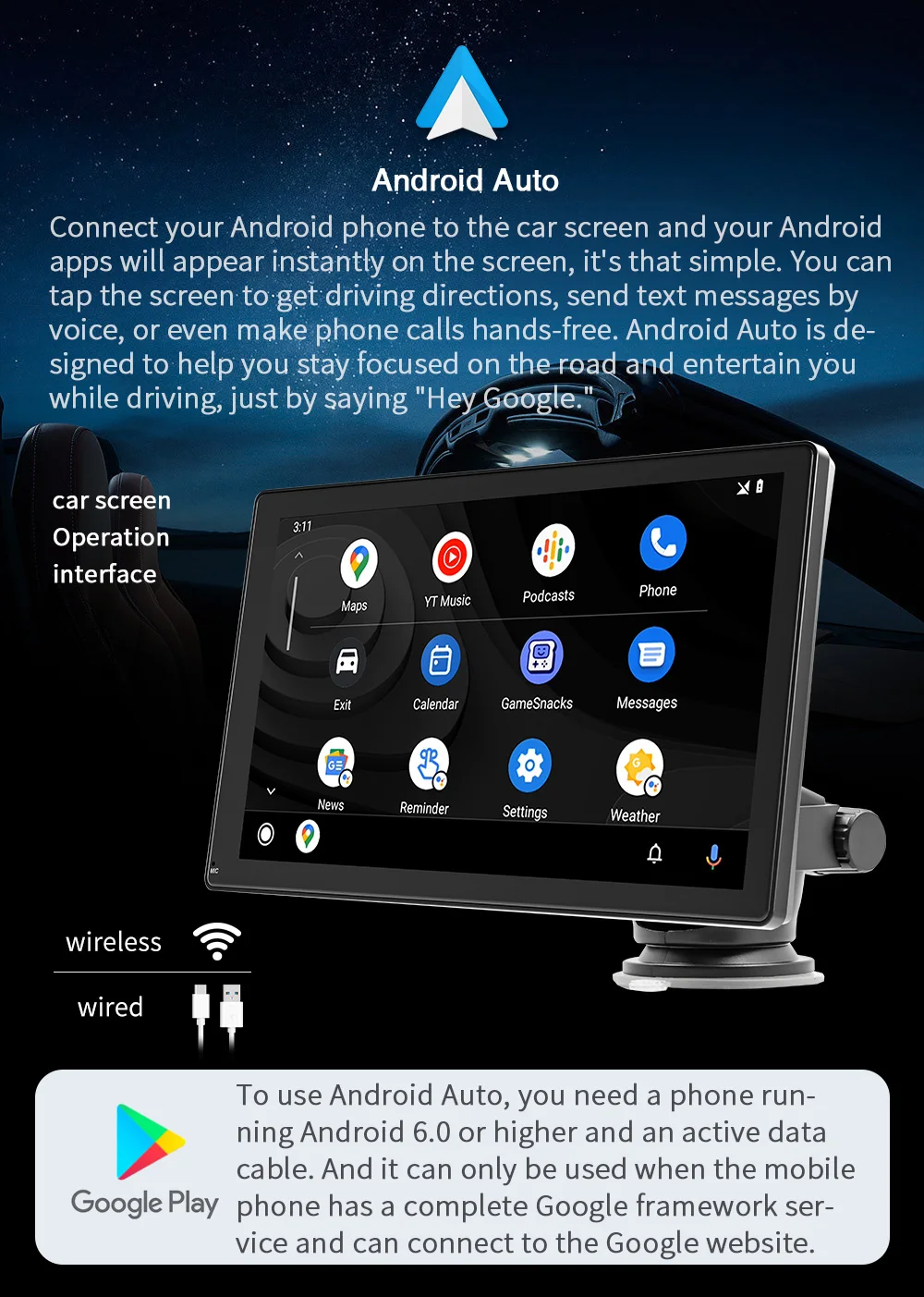 2.4G/5G dviejų dažnių ryšys (automatiškai persijungia pagal prie mobiliojo telefono prijungto interneto prieigos taško dažnių juostą, naudojamas jungiantis prie „Android AUTO“ ir „Apple CARPLAY“) |