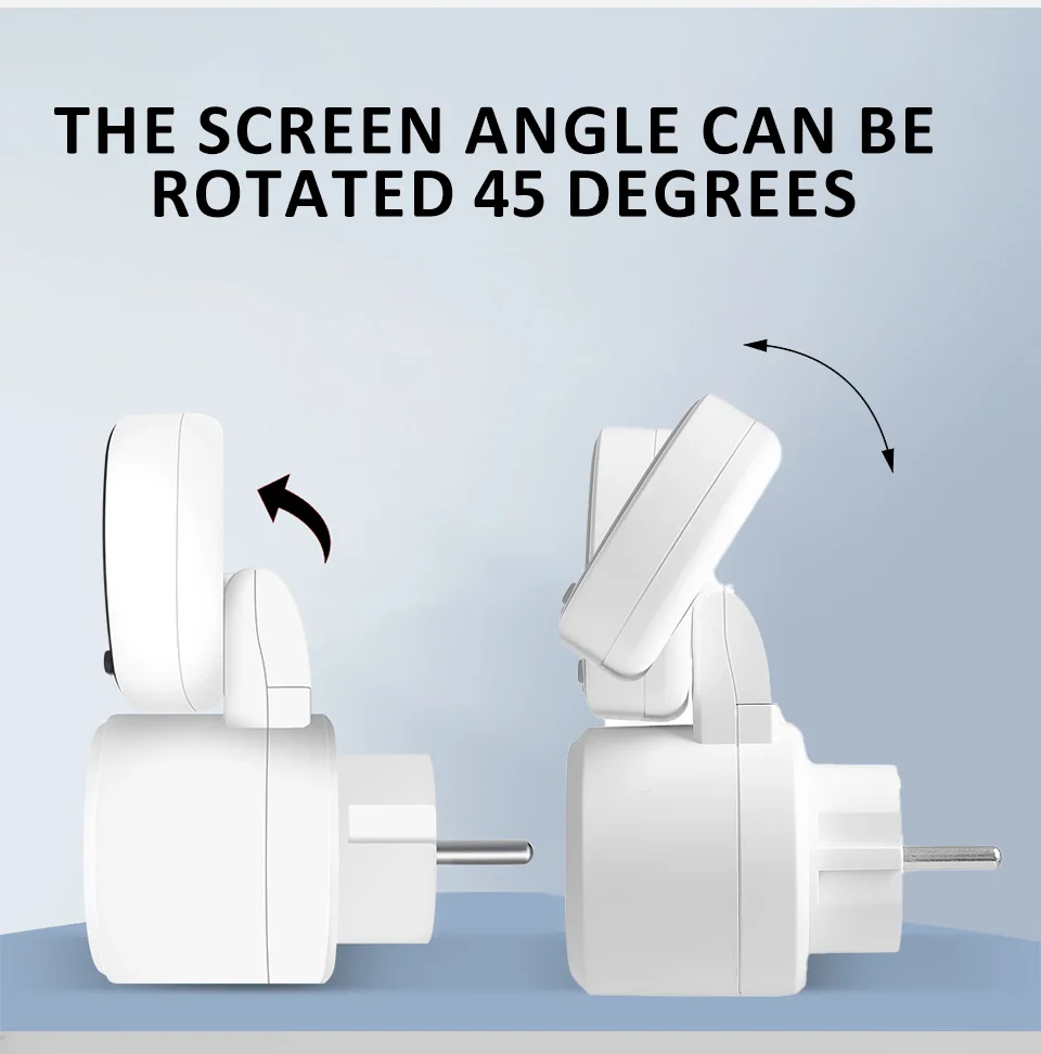 -45° reguliuojamas LCD ekranas: Šis gaminys aprūpintas dideliu, didelės raiškos LCD ekranu. Rodmenys yra aiškūs ir lengvai skaitomi. Ekraną taip pat galima reguliuoti 45 laipsnių kampu, kad būtų patenkinti skirtingų kampų skaitymo poreikiai.