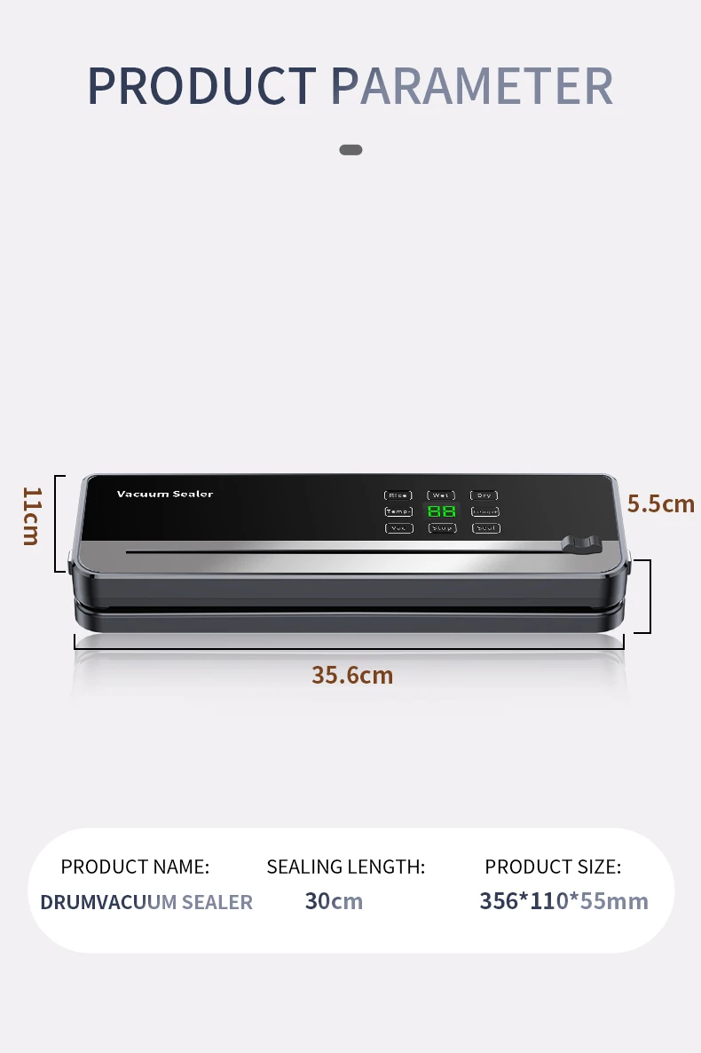 💎 Vakuuminio sandarinimo aparato sandarinimo ilgis yra 30 cm. Nauja sandarinimo temperatūros reguliavimo funkcija.