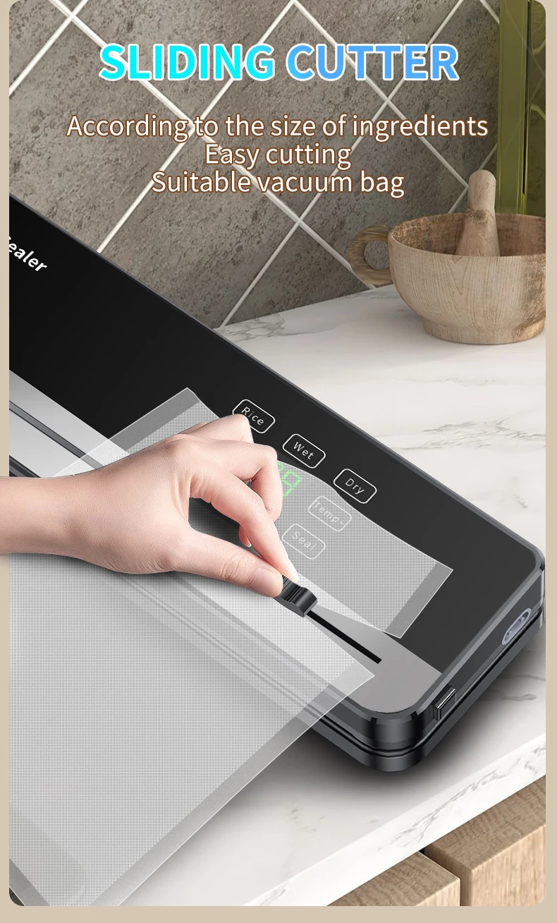 Elektrinis vakuuminis sandariklis Įmontuotas pjaustytuvas Virtuvės maisto laikymo sandariklis Jutiklinis mygtukas Sausų/šlapių maisto produktų pakuočių sandariklis Virtuvės vakuuminis sandariklis