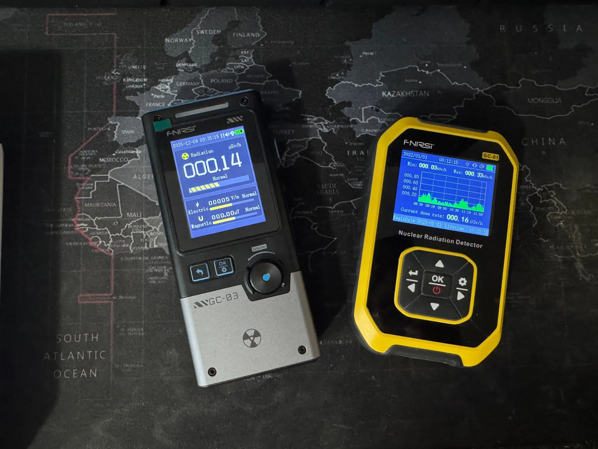 GC-03 elektromagnetinės spinduliuotės detektorius, elektrinis magnetinio lauko stiprumo radijo dažnių monitorius, signalizacijos įrašas, branduolinis Geigerio skaitiklis