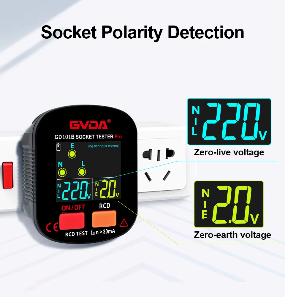 GVDA skaitmeninis lizdo testeris, lizdo tikrintuvas, įžeminimo nulio linijos poliškumo fazės tikrintuvas, elektros grandinės pertraukiklio ieškiklis, ES kištukas