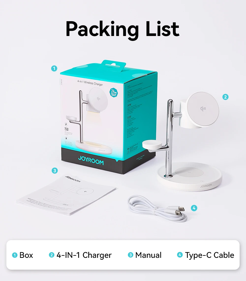 Novatoriška 4 viename įkrovimo stotelė „Apple“ ekosistemai: „JOYROOM Qi2.0“ sertifikuotas itin greitas belaidis įkroviklis „iPhone“ telefonams, pasižymintis 2 kartus greitesniu įkrovimo greičiu nei įprasti 7,5 W magnetiniai įkrovikliai, turi 3 W greito belaidžio įkrovimo vietą „Apple Watch“ serijai ir 5 W greito belaidžio įkrovimo bazę „AirPods“. Su novatoriška išmania interaktyvia, šilto/šalto temperatūros reguliuojama naktine lempute „JOYROOM“ sukuria tobulą komforto atmosferą.
