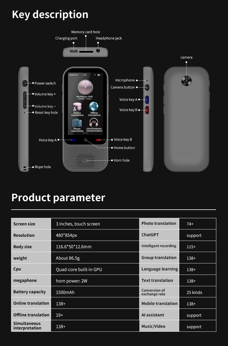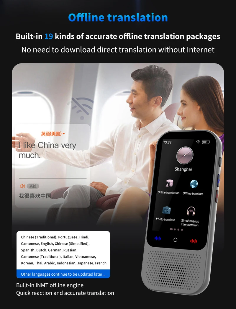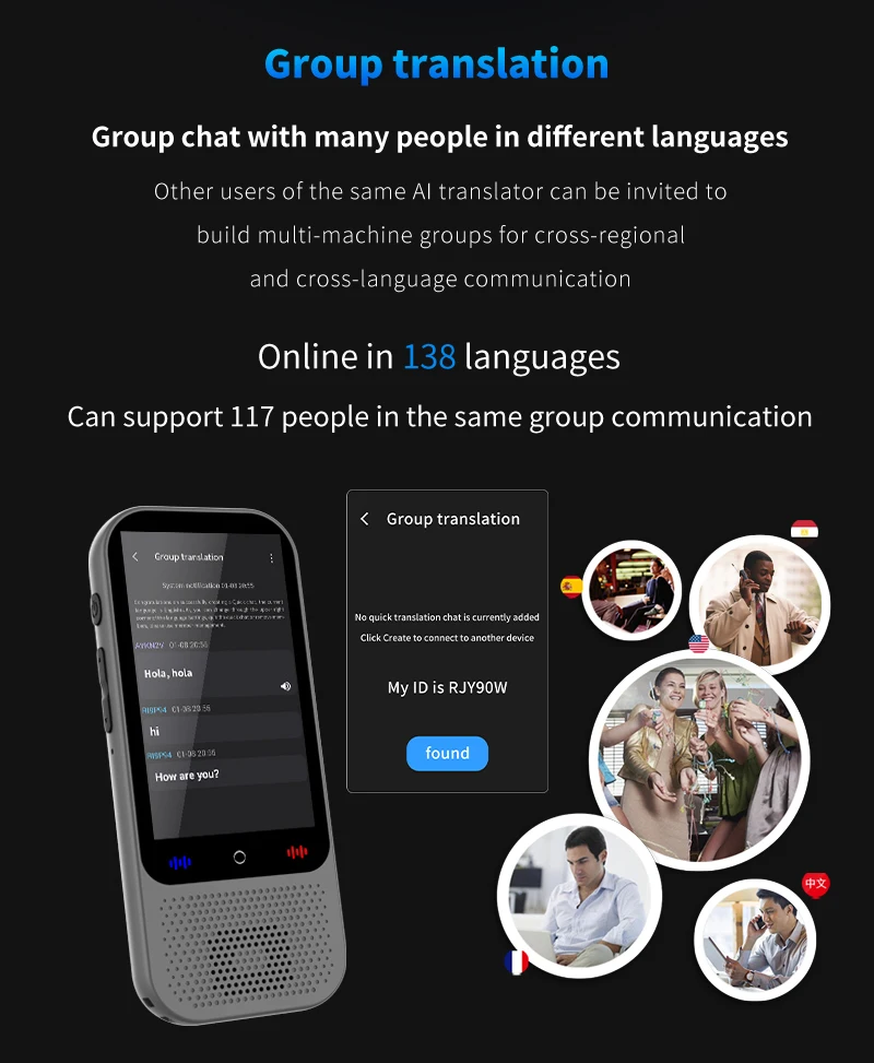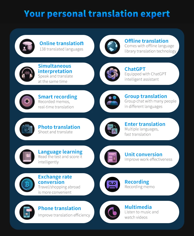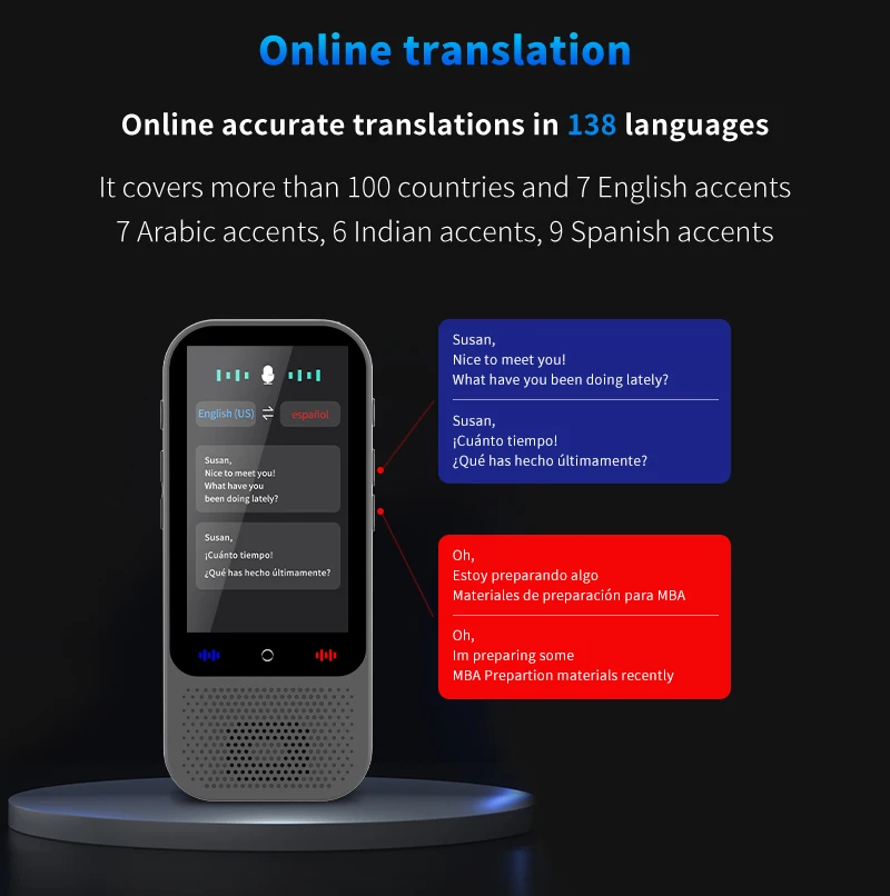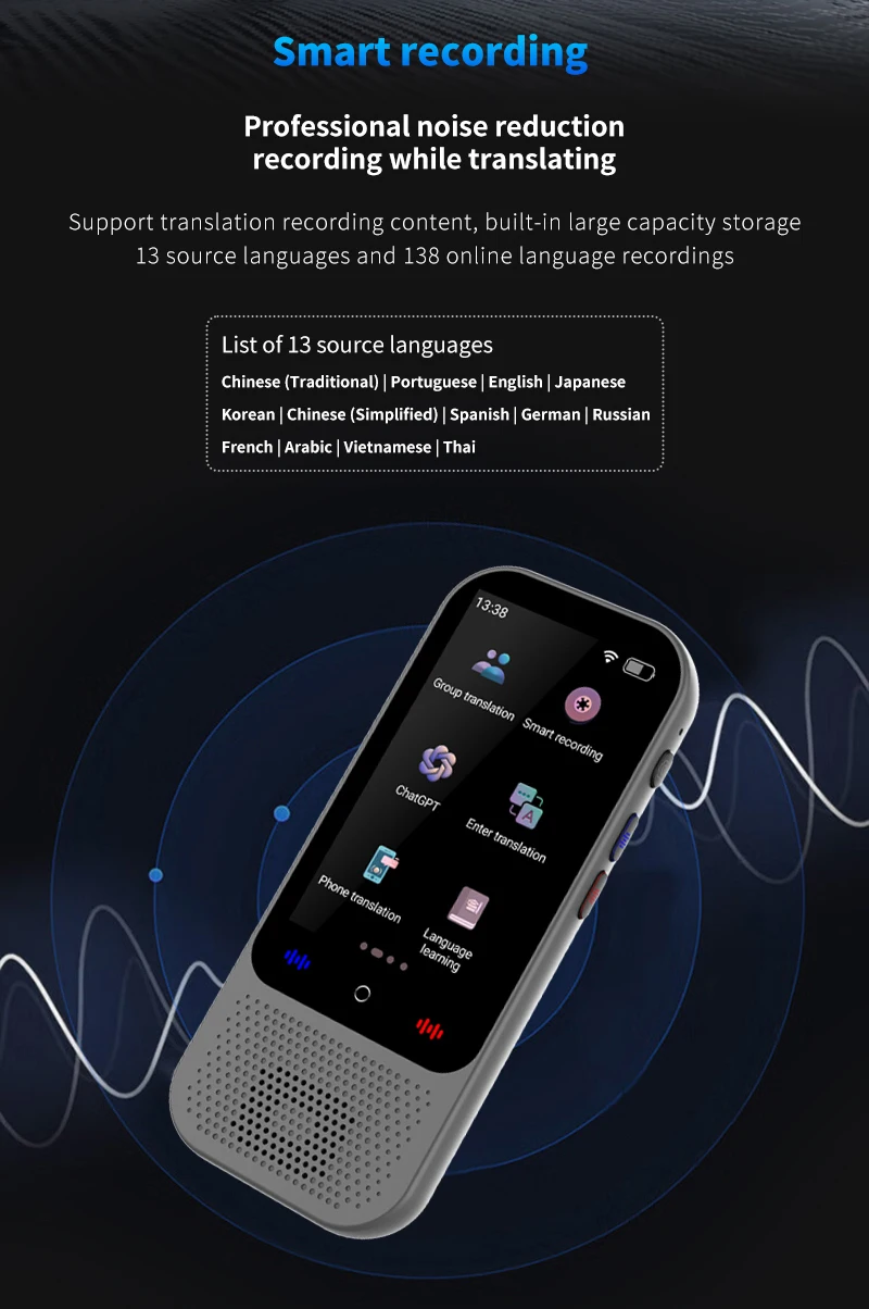 Kalbos vertėjo įrenginys su dirbtiniu intelektu ir vertimo palaikymu „ChatGPT 138“ – realaus laiko vertimo įrenginys su dirbtiniu intelektu ir balso vertimu su