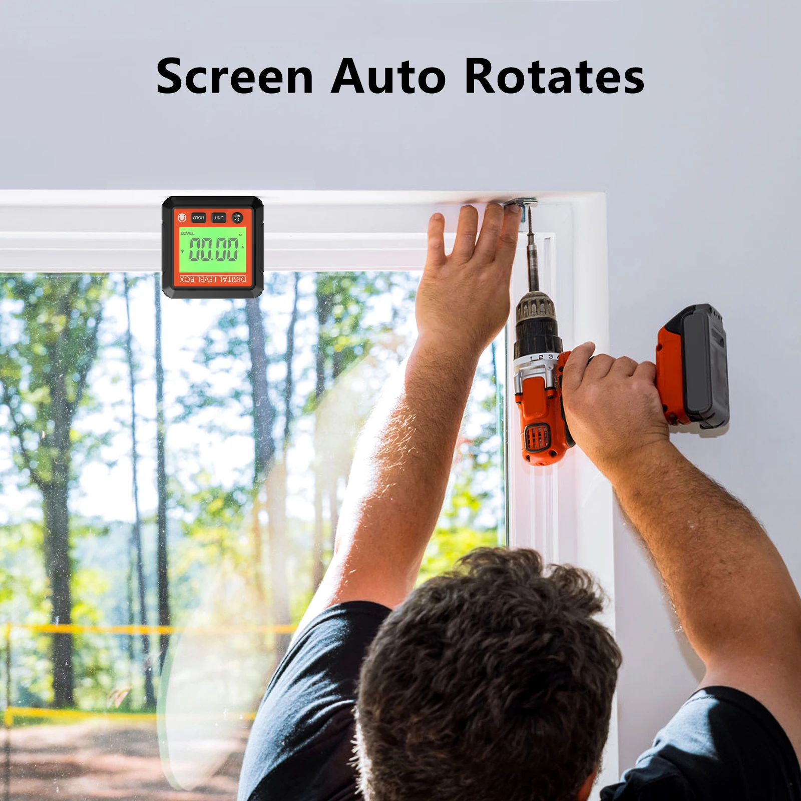 Magnetinis skaitmeninis nivelyras su kampo ieškikliu, LCD foninio apšvietimo lygio matuoklis, posvyrio matuoklis, 4 * 90° magnetinis kampamačio lygio dėžutė medienos apdirbimui