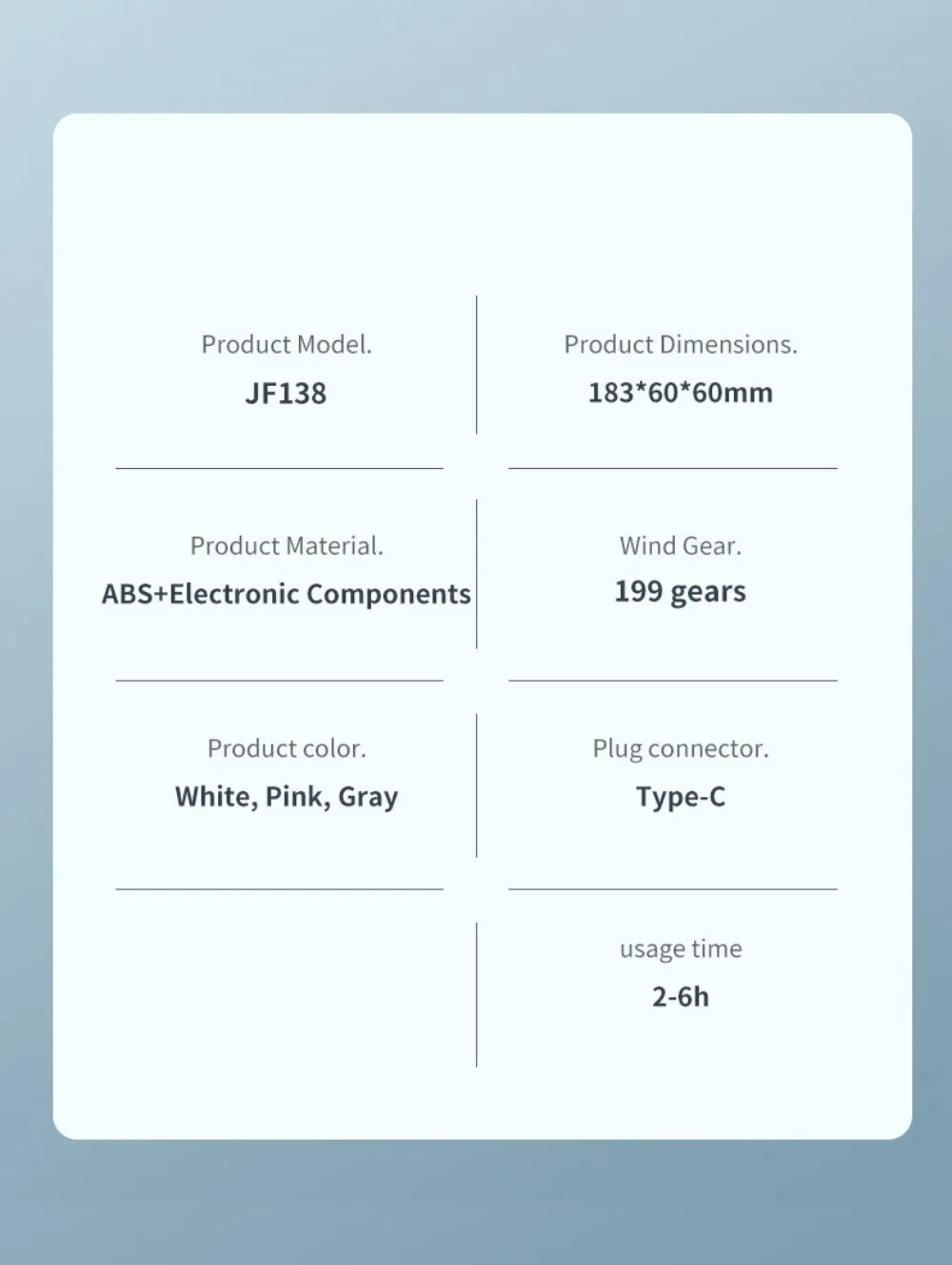 Produkto modelis: JF138 LED skaitmeninis ekrano ventiliatorius