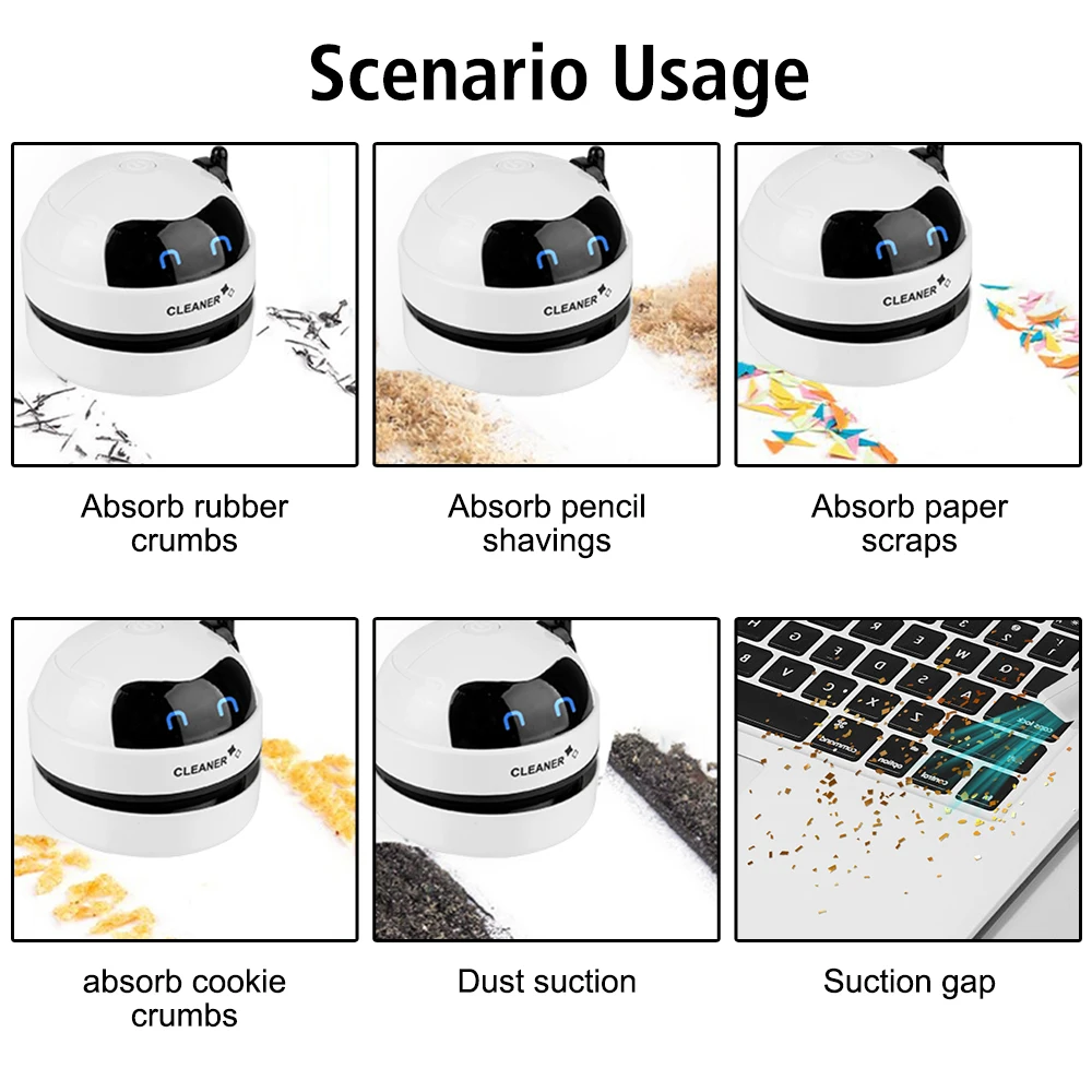 Mini dulkių siurblys, nešiojamas, su USB įkrovimu, stalinis valiklis, stalo šlavimo stalas su švariu šepečiu, skirtas namų biuro stalui, dulkių siurbliui