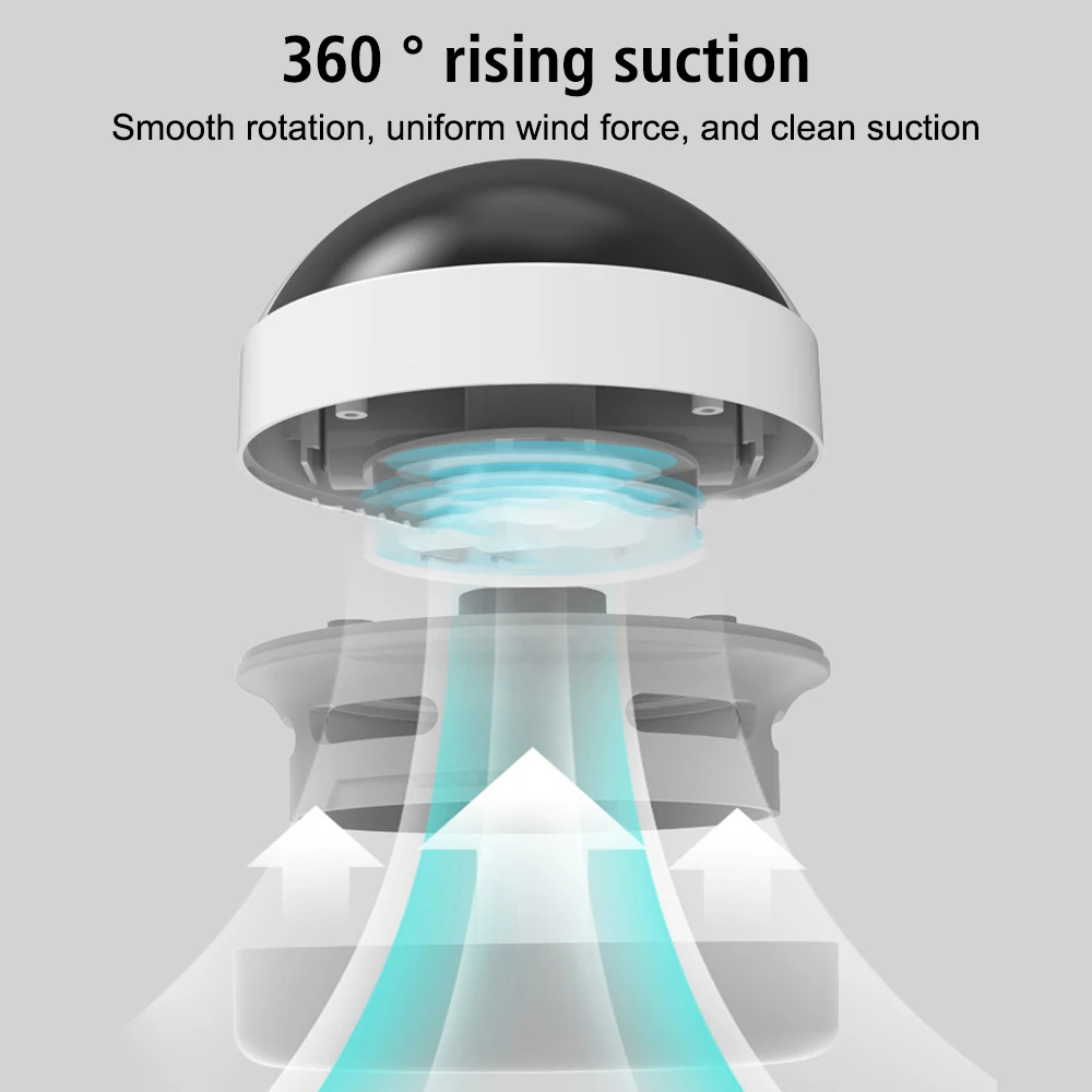 360 laipsnių kylantis siurbimas, sklandus sukimasis, tolygus vėjas, švarus siurbimas.