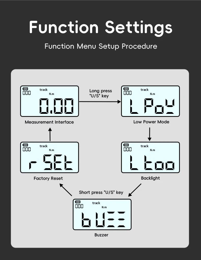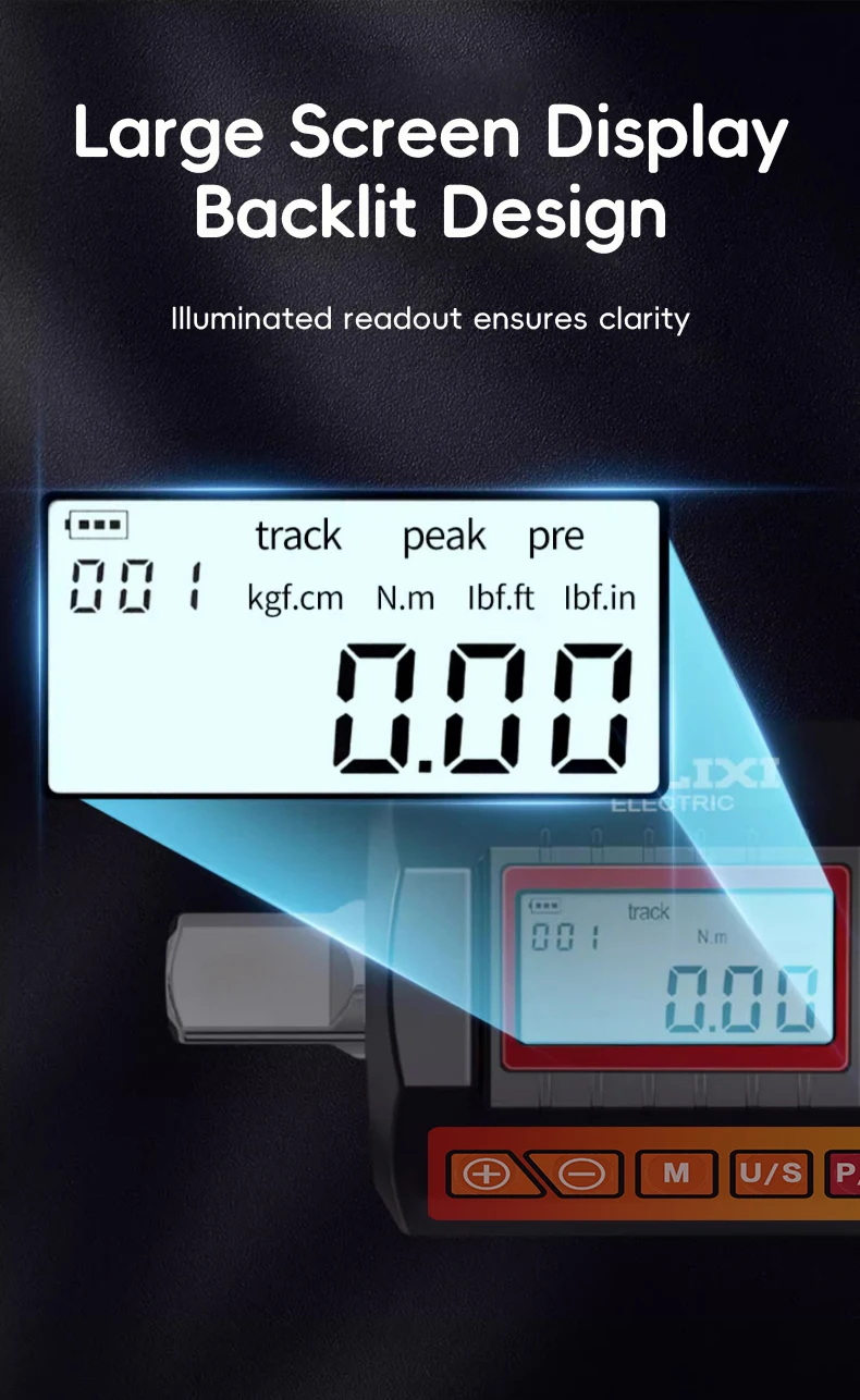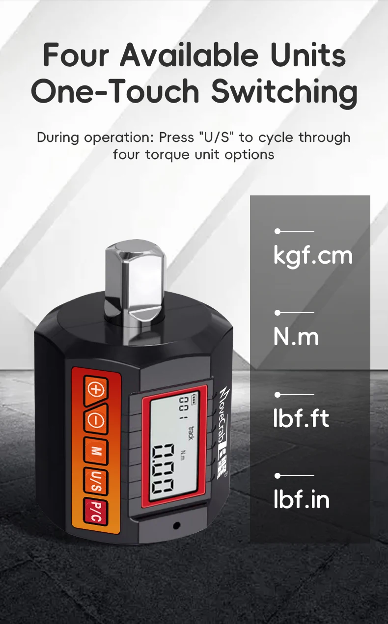 Keli sukimo momento vienetai: lengvai perjunkite kgf.cm, Nm, lbf.ft ir lbf.in, užtikrindami universalumą įvairiems pritaikymams.
