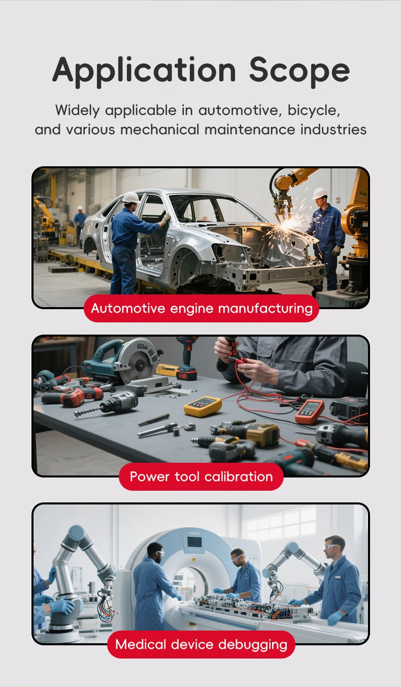 Dvikryptė paklaida +/- 2 %: Pasiekite tikslų sukimo momento valdymą su ± 2 % dvikrypte paklaida pagal laikrodžio rodyklę ir ± 2,5 % – prieš laikrodžio rodyklę.