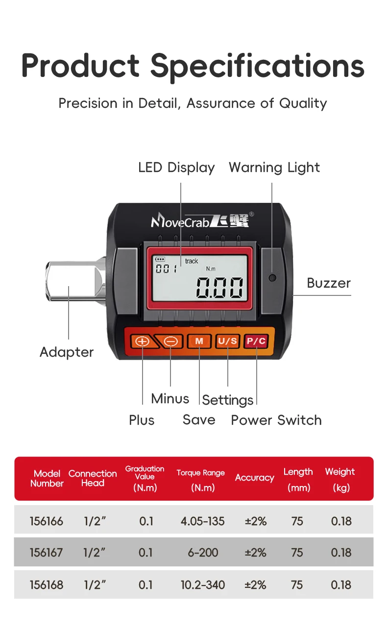 „MoveCrab“ skaitmeninis sukimo momento adapteris, 1/2 colio pavara, įskaitant adapterius 3/8 colio ir 1/4 colio elektroniniam sukimo momento raktui, dviračių rinkinys automobilių remontui.