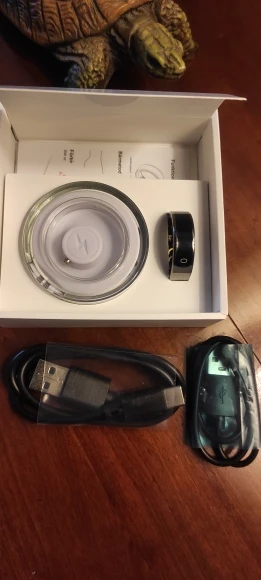 Fast delivery. The package contains a ring, a charging box, a USB cable, and a cable for direct charging. The charging box has very nice lighting effects. The ring discharges in 3 to 4 days with heart rate reading every 30 minutes. There is a blood pressure reading and the possibility to connect to Google Fit via Santé Connect. The connection software is Electric, it is very comprehensive and pleasant to use.
