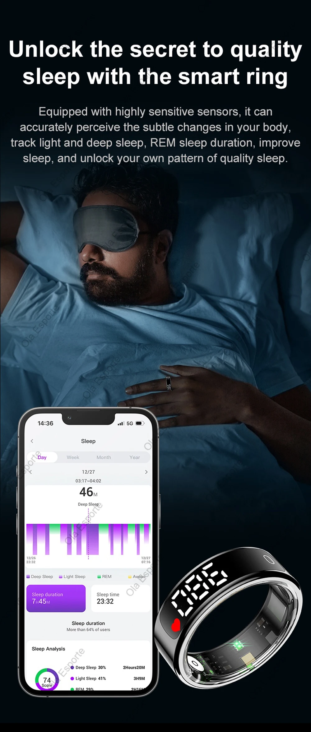 Naujas išmanusis žiedas R13 LED ekranas su gestų vaizdo įrašymo funkcija, širdies ritmo stebėjimas, miego monitorius, 5ATM vandeniui atsparus belaidis įkrovimo žiedas, 2025 m.