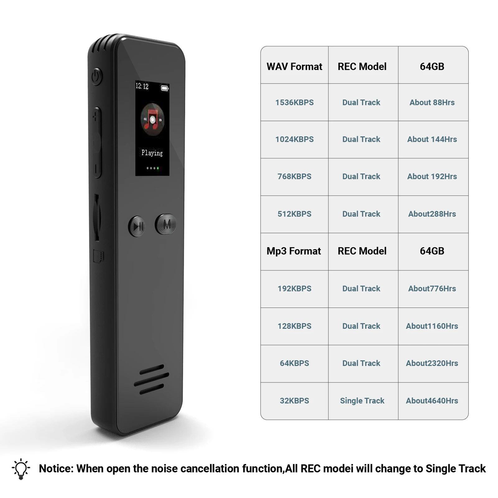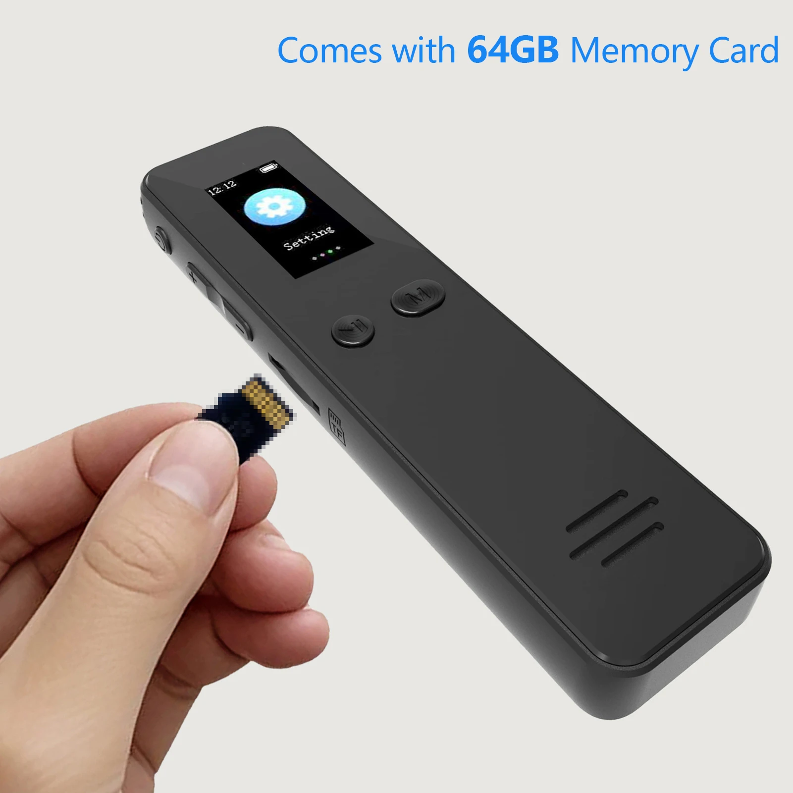 【Naujas】Išmanusis balso įrašymo įrenginys su 64 GB atmintimi, 1536 kbps įrašymu, TFT ekranu, įmontuotu garsiakalbiu, slaptažodžio apsauga, 18 val. baterijos veikimo laikas
