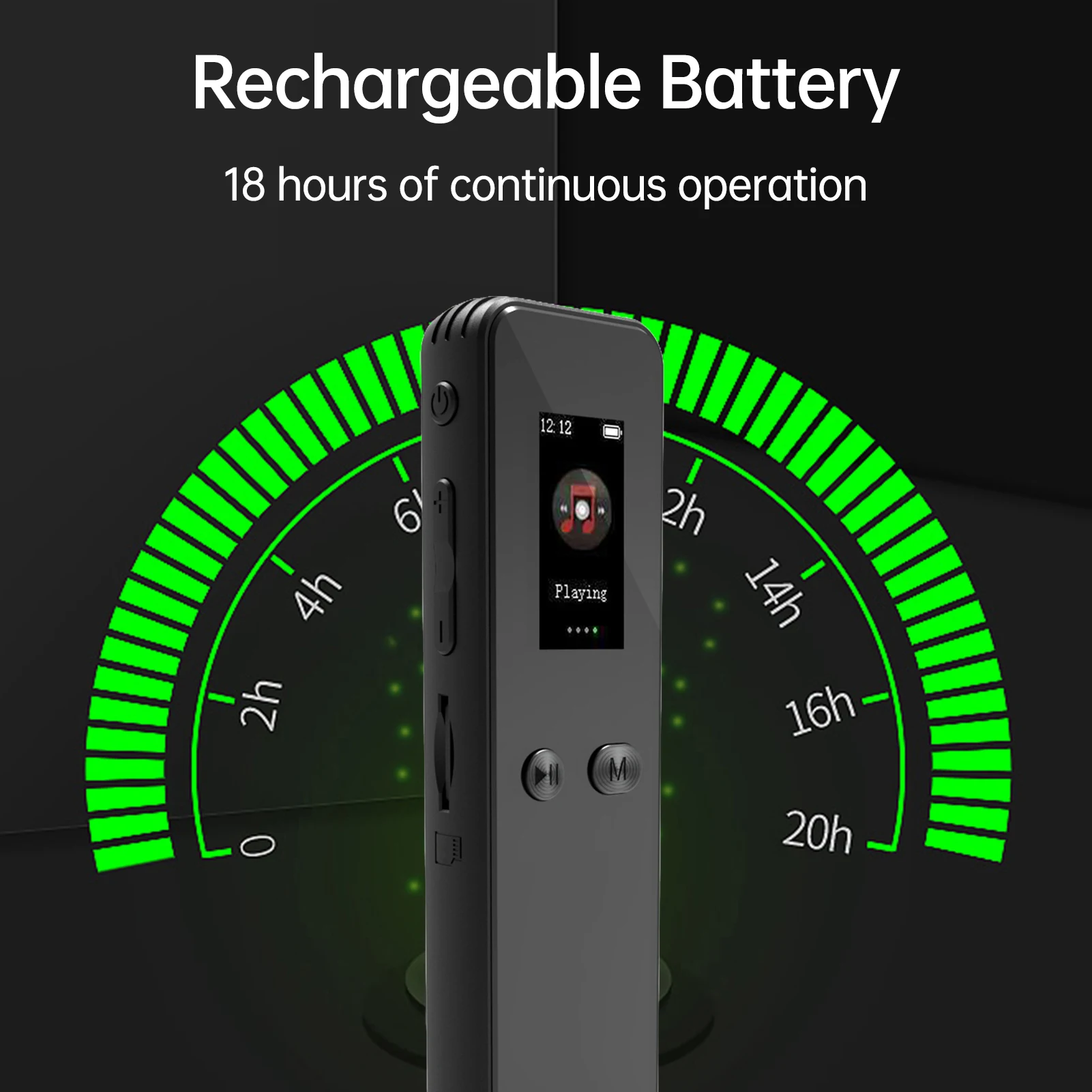 4. Ilgesnis įrašymo laikas: su 180 mAh įkraunama baterija šis nešiojamas įrašymo įrenginys gali nepertraukiamai veikti iki 18 valandų, todėl idealiai tinka paskaitoms, susitikimams ar interviu.