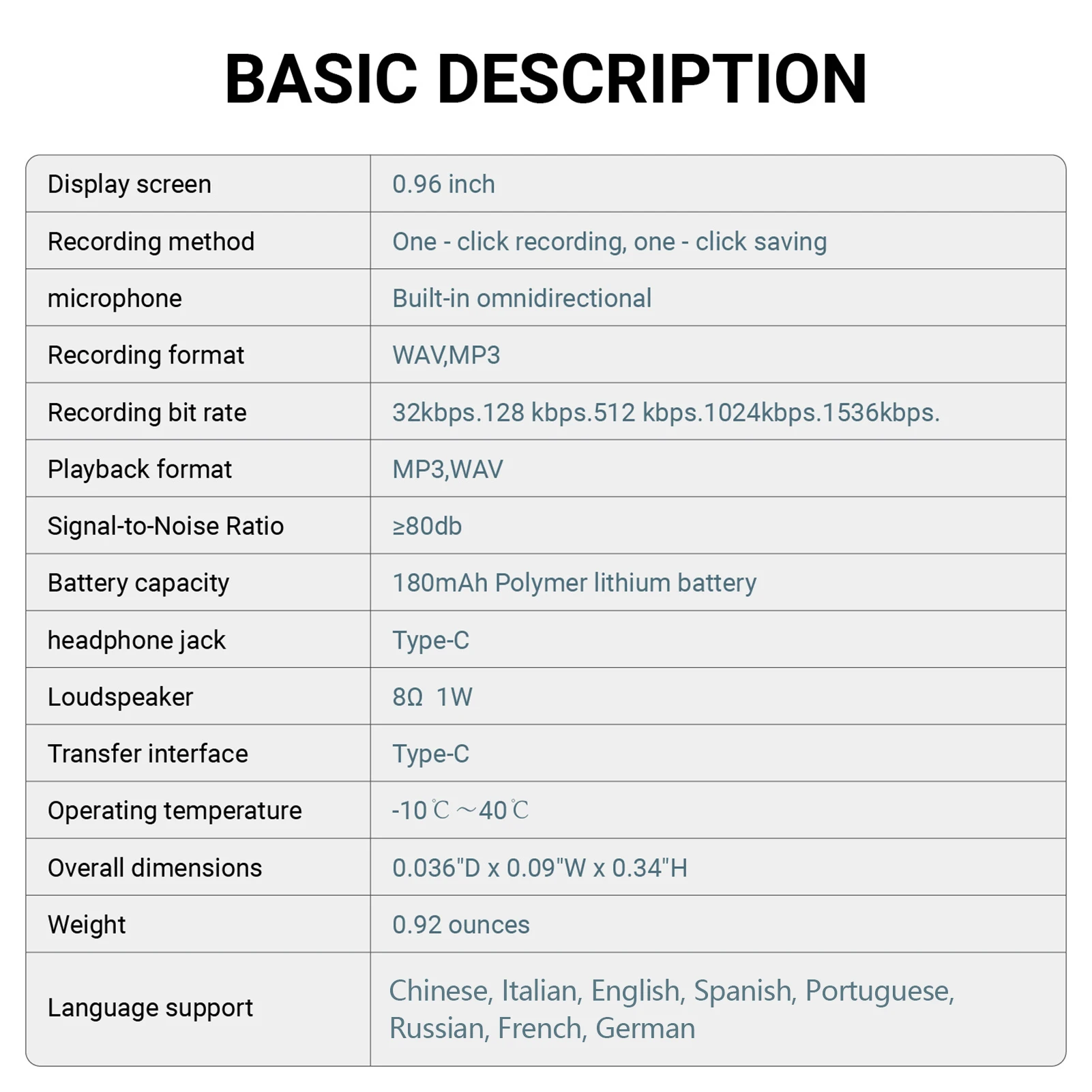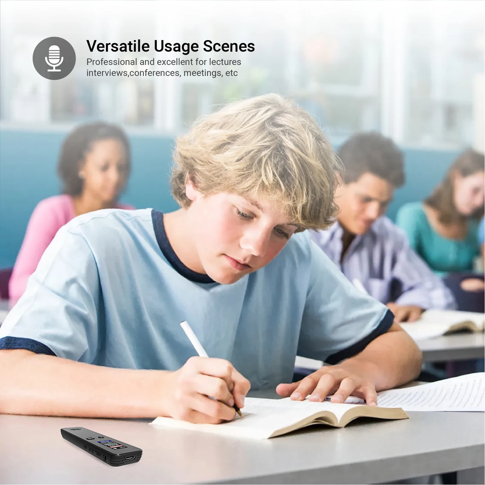 5. Kompaktiškas daugiakalbis įrankis: sveriantis 26 g ir palaikantis 8 kalbas, lengvas garso įrašymo įrenginys dėl savo kišenėje telpančio dizaino tinka studentams, profesionalams ir keliautojams.