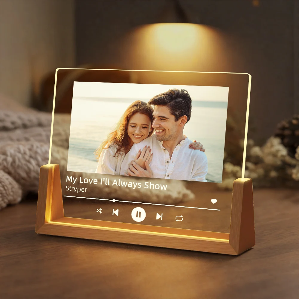 Personalizuota nuotraukų muzikos naktinė lemputė, individualizuotos portretinės akrilinės lempos su daina, romantiška sukaktis, vestuvių poros gimtadienio dovana