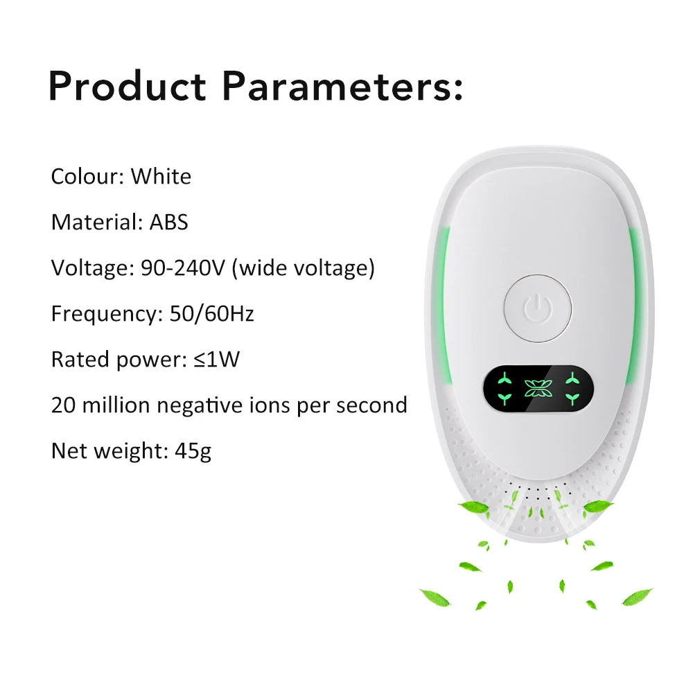 5. Kaip nešiojamas neigiamų jonų generatorius, jis tiesiogiai jungiamas į lizdus (nereikia įkrauti) su vieno mygtuko valdymu kompaktiško dydžio.