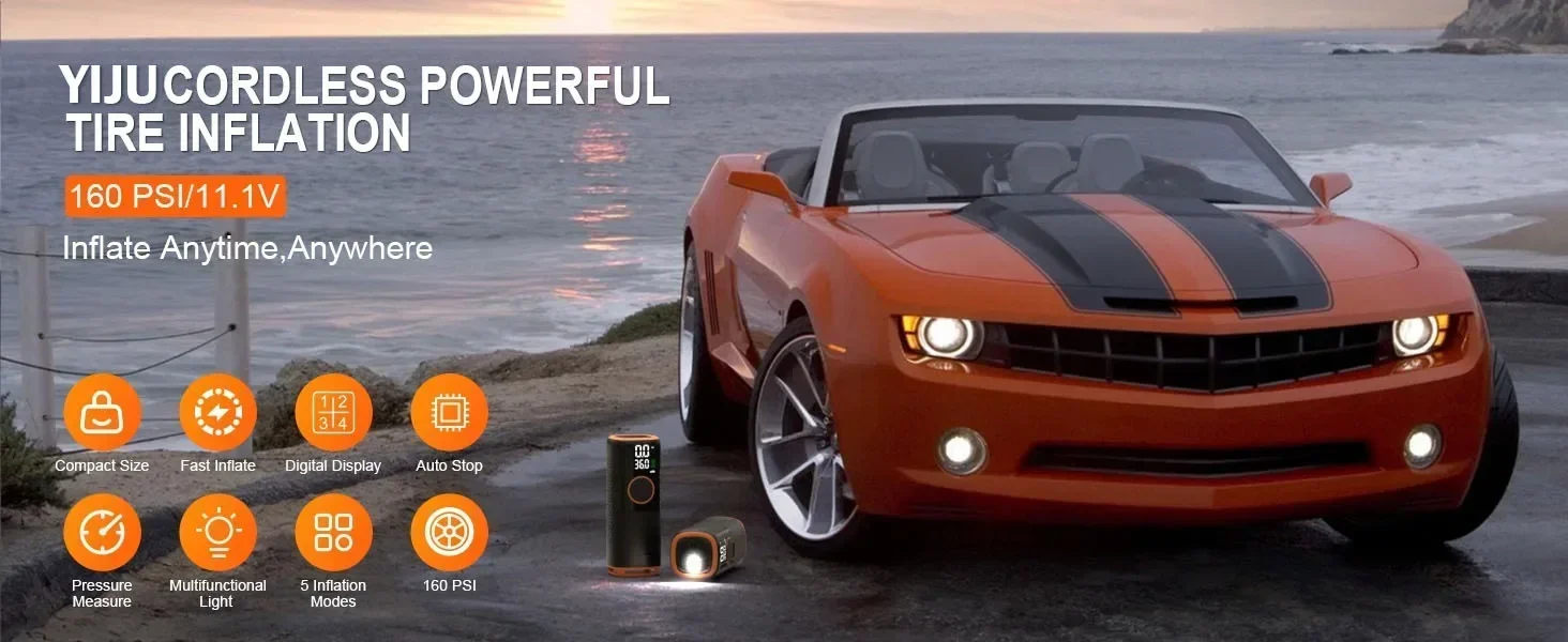 A : Jūsų YIJU CQBA102 užtikrina greitą ir efektyvų automobilių padangų, dviračių padangų, taip pat pripučiamų daiktų, tokių kaip plaukimo žiedai ir įvairūs sportiniai kamuoliai, kurių slėgis siekia iki 160 Psi, pripūtimą.