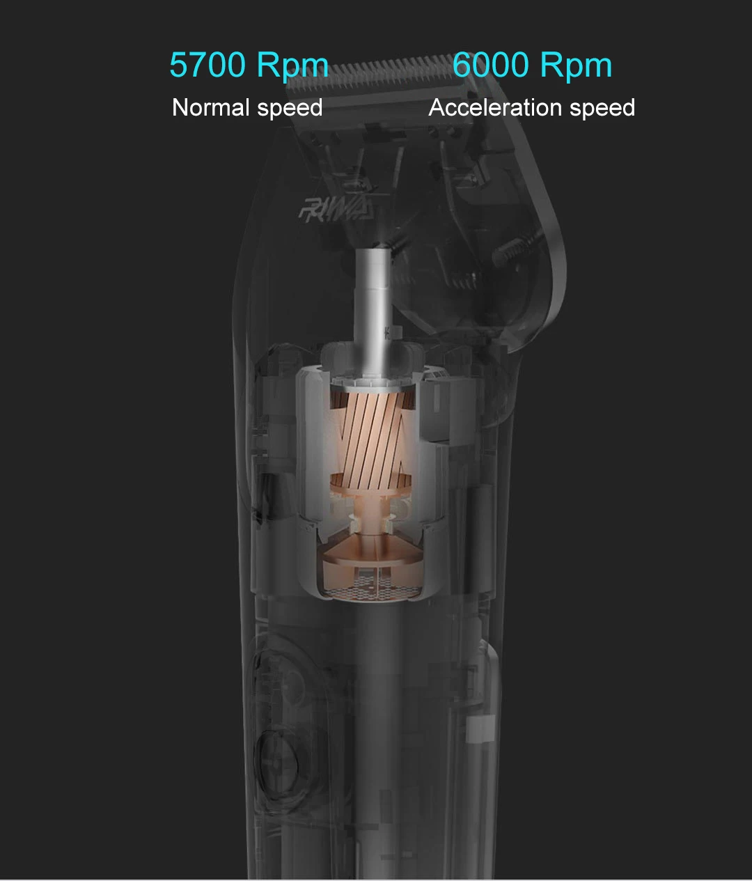 Vienu mygtuku įjunkite greitėjimą ir variklio greitis akimirksniu padidės, todėl kirpimas bus efektyvesnis, o šiurkščius ir kietus plaukus bus lengviau apkirpti.