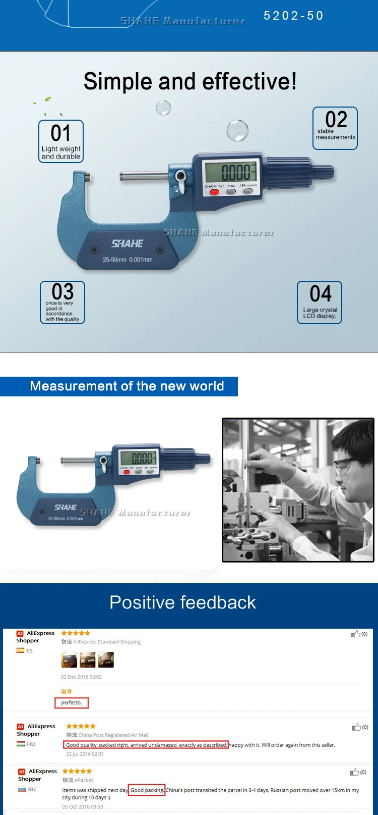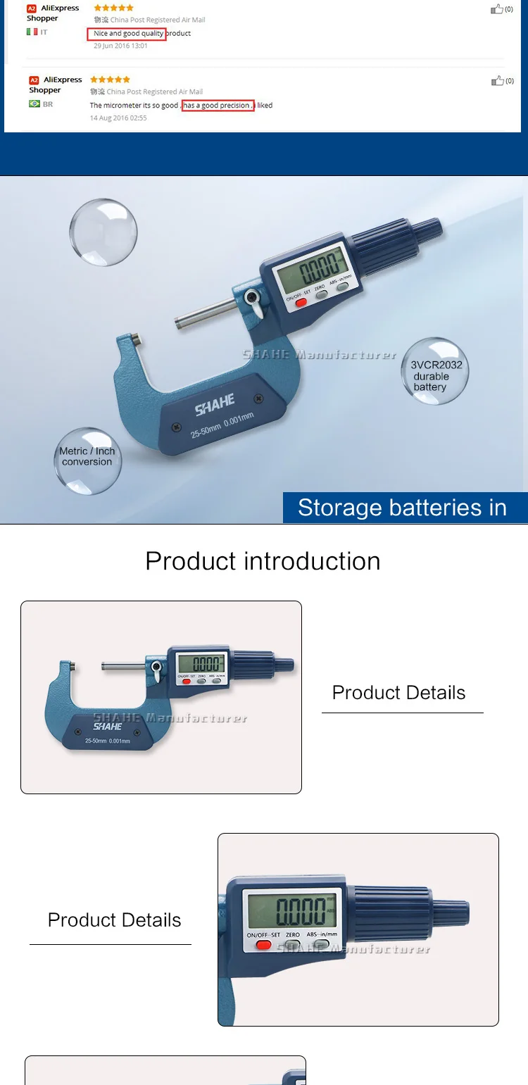 SHAHE skaitmeninis išorinis mikrometras 0,001 mm, slankmatis, matavimo įrankiai