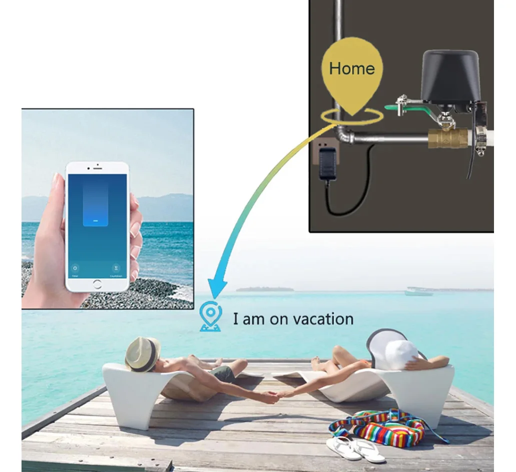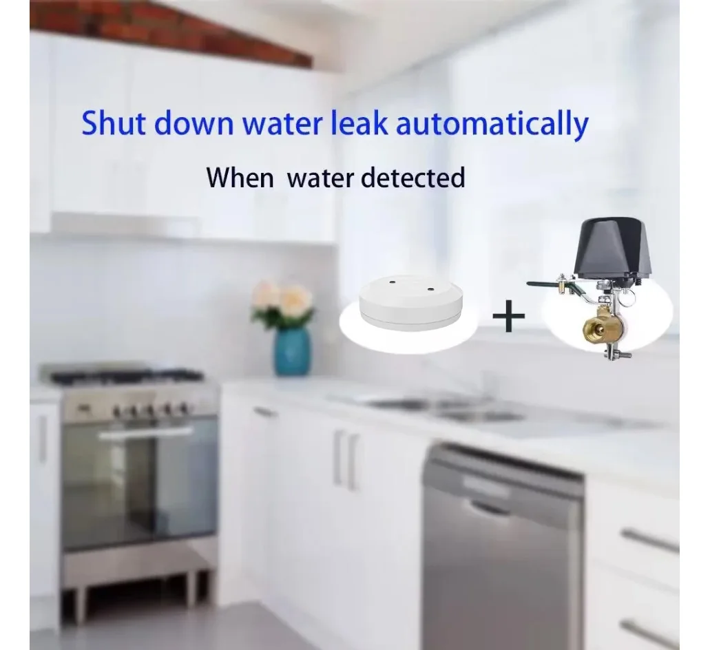 2. Išmanioji nuotėkio aptikimo integracija: suporuokite su „Tuya“ suderinamais nuotėkio jutikliais, kad automatiškai išjungtumėte vožtuvą, kai aptinkamas vandens nuotėkis, taip išvengdami galimų potvynių ir sutaupydami brangaus remonto.