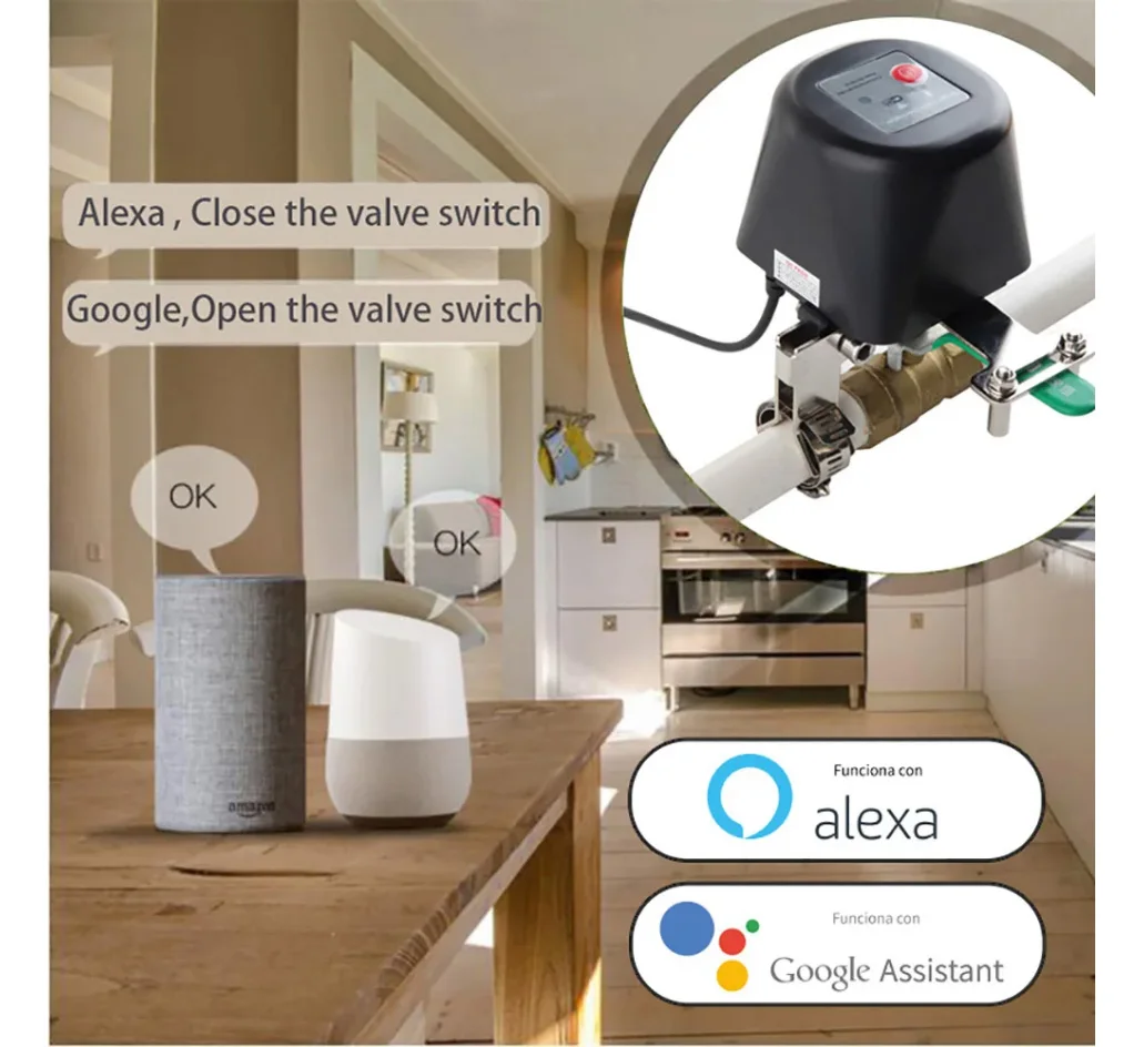 4. Balso valdymo suderinamumas: sklandžiai veikia su „Amazon Alexa“ ir „Google Assistant“, leisdamas jums valdyti vožtuvą paprastomis balso komandomis.