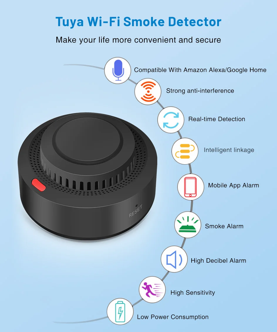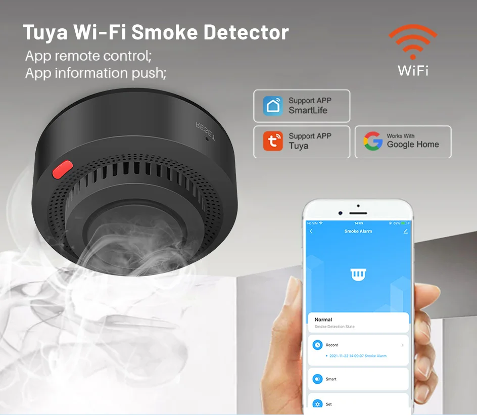 • Išmaniųjų namų platforma: šis dūmų detektorius yra išmaniųjų namų platformos dalis, leidžianti jį prijungti prie kitų išmaniųjų namų įrenginių, kad būtų sukurta vientisa ir integruota namų apsaugos sistema.