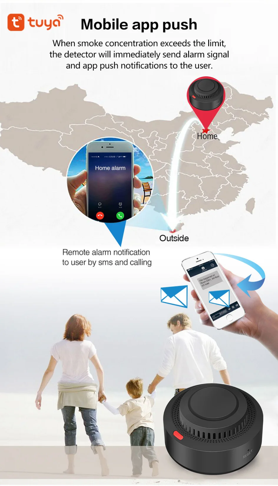 【 Nuotolinis stebėjimas 】 Dūmų dinamiką galima stebėti realiuoju laiku per mobiliąją programėlę. Nesvarbu, kaip toli esate nuo namų, galite padaryti savo namus išmanesnius.
