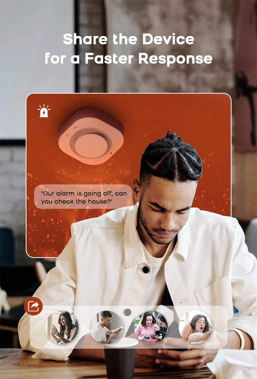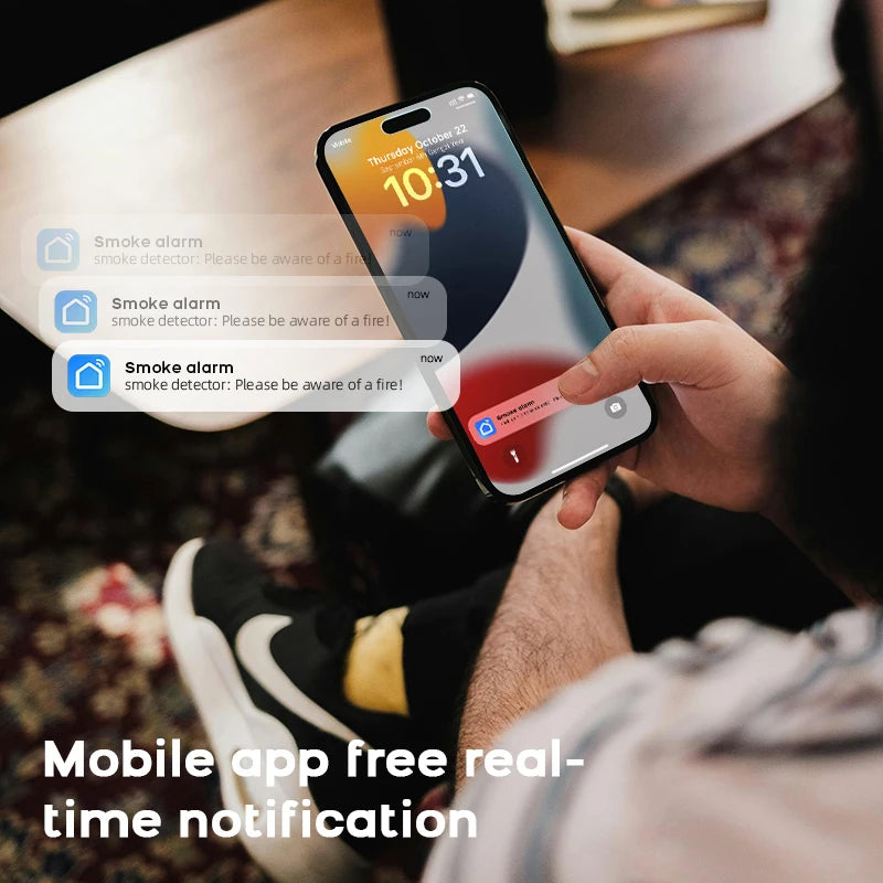 A smart smoke sensor designed to detect potential fire risks quickly and send instant alerts directly to your smartphone, helping you react faster and protect what matters most.