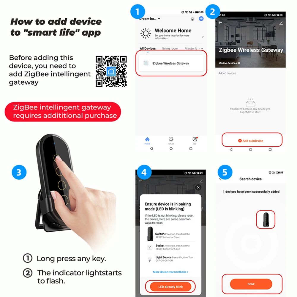 1. „ZigBee“ produktas turi būti naudojamas su „ZibBee“ šliuzu (šliuzą reikia įsigyti atskirai)