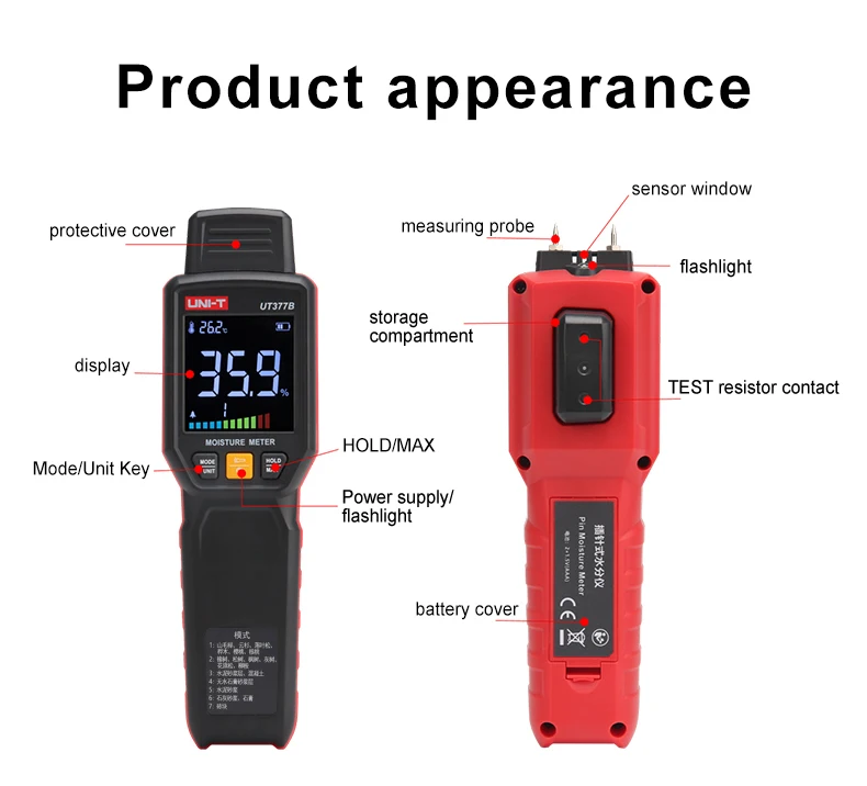 UNIT skaitmeninis medienos drėgmės matuoklis medienos drėgmės testeris higrometras medienos drėgmės detektorius LCD ekranas cemento plytų drėgmės matuoklis