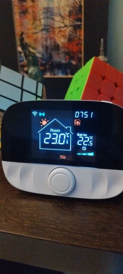 Lengvai reguliuokite temperatūrą, tvarkaraštį ar režimus. Termostate taip pat yra LED ekranas ir mygtukai, kad būtų galima greitai pasiekti norimus nustatymus.