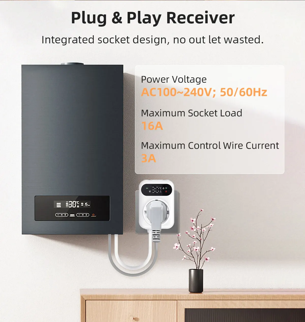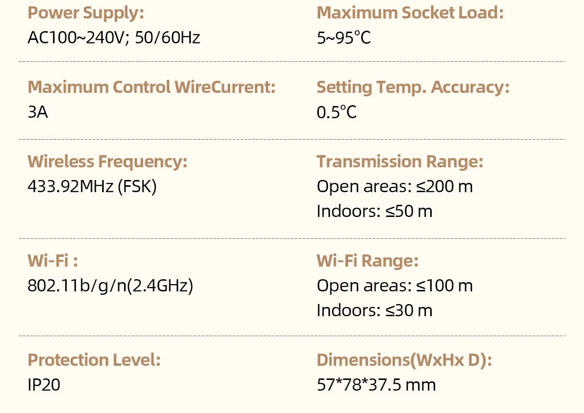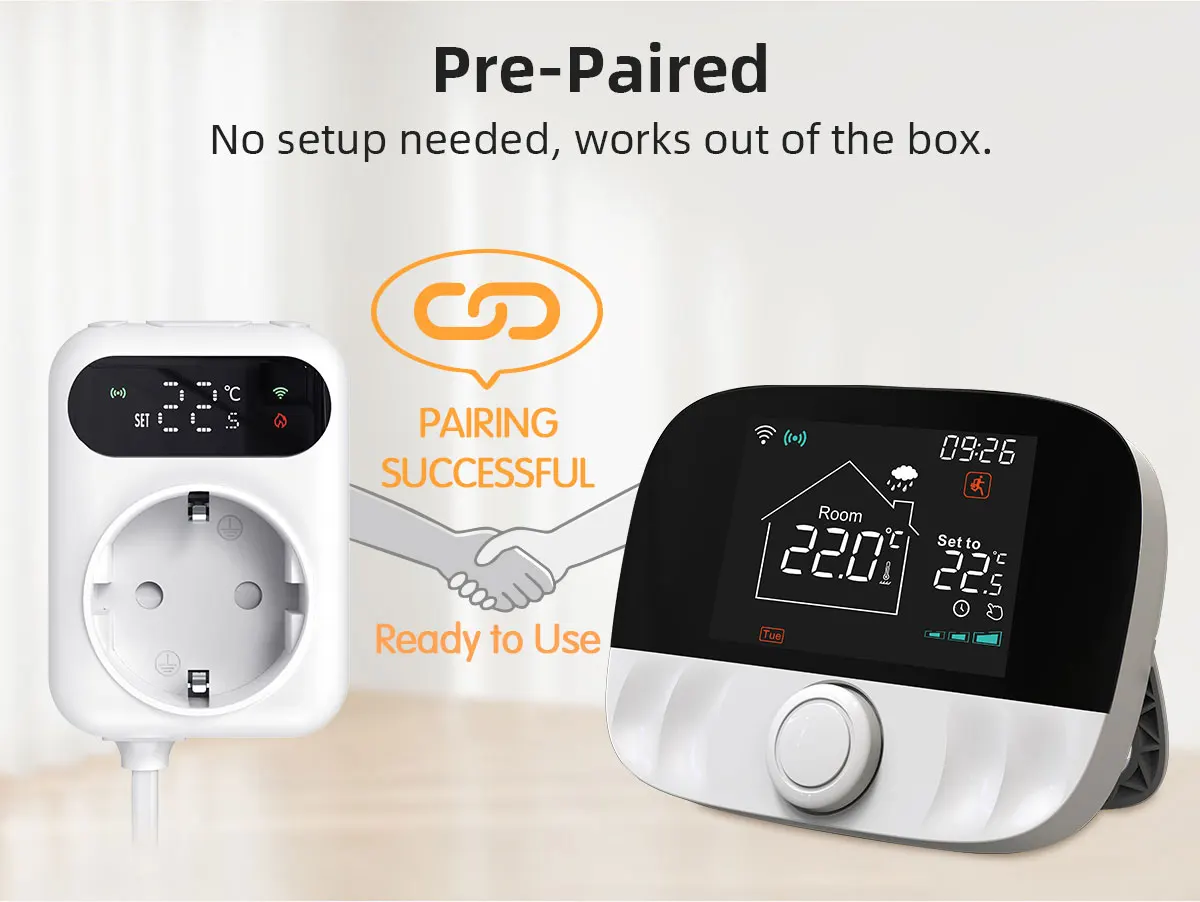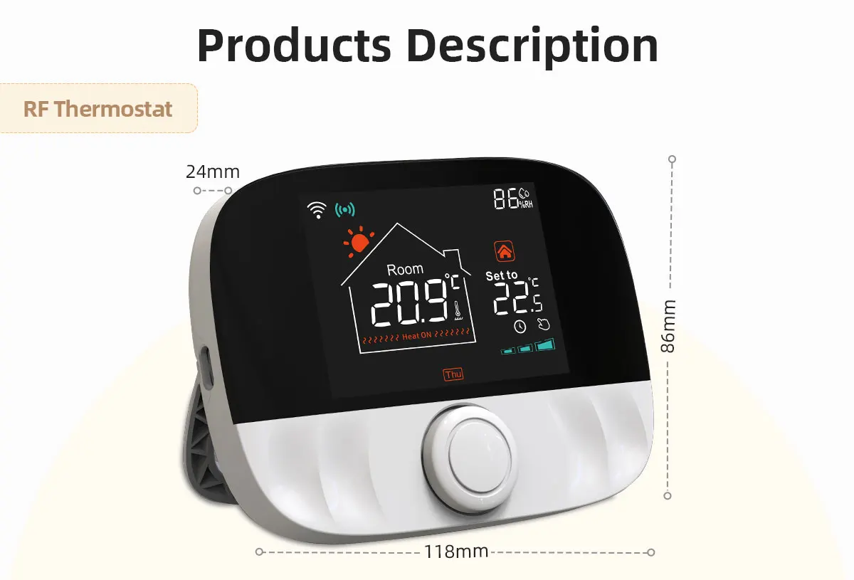 Pilnas WiFi šildymo termostato rinkinys, skirtas dujiniams katilams ir vandens grindų šildymo valdymui, užtikrinantis tikslų ir energiją taupantį šildymą. T9G termostatas ir TP3BL imtuvas naudoja belaidę RF433 technologiją + WiFiAPP nuotolinio valdymo pultą , leidžiantį lengvai ir patogiai valdyti namų temperatūrą. Dėl paprasto montavimo, iš anksto susiejimo ir išmaniųjų funkcijų nereikia jokių sudėtingų laidų!