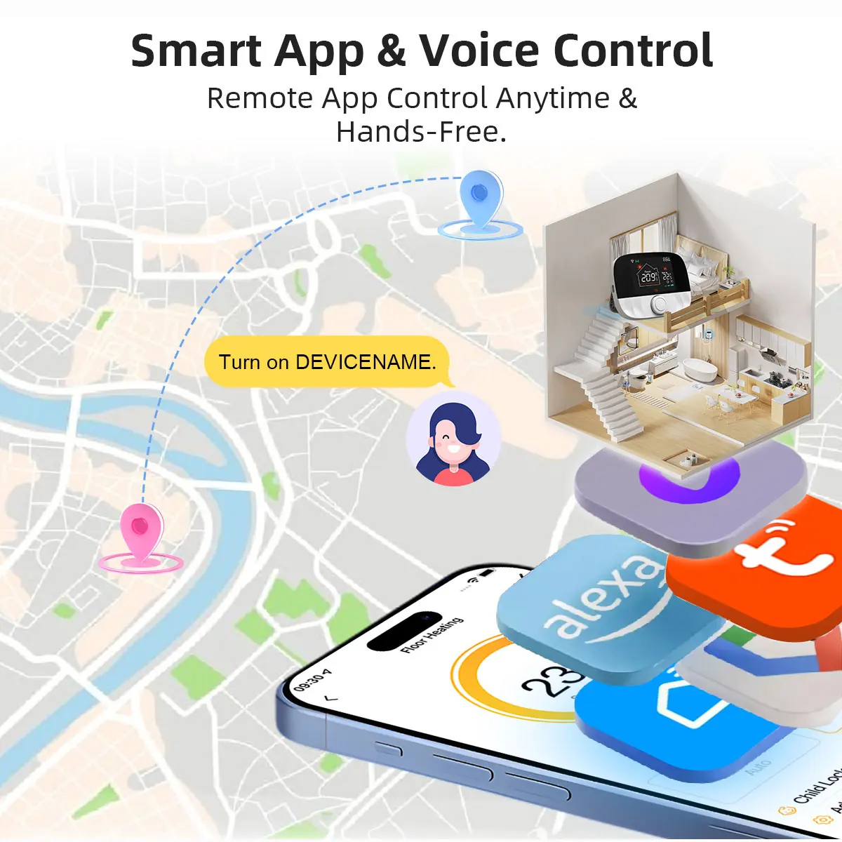 Valdykite šildymą nuotoliniu būdu naudodami „Smart Life“ / „Tuya“ programėlę. Veikia su „Alexa“ / „Google Home Assistant“, kad galėtumėte valdyti balsu be rankų.