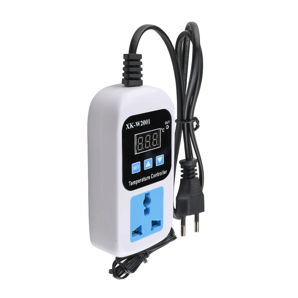 XK-W2001 skaitmeninis temperatūros drėgmės reguliatorius, lizdas, AC 110-220V termostatas, reguliatorius, lizdas, ES kištukas, su NTC jutikliu